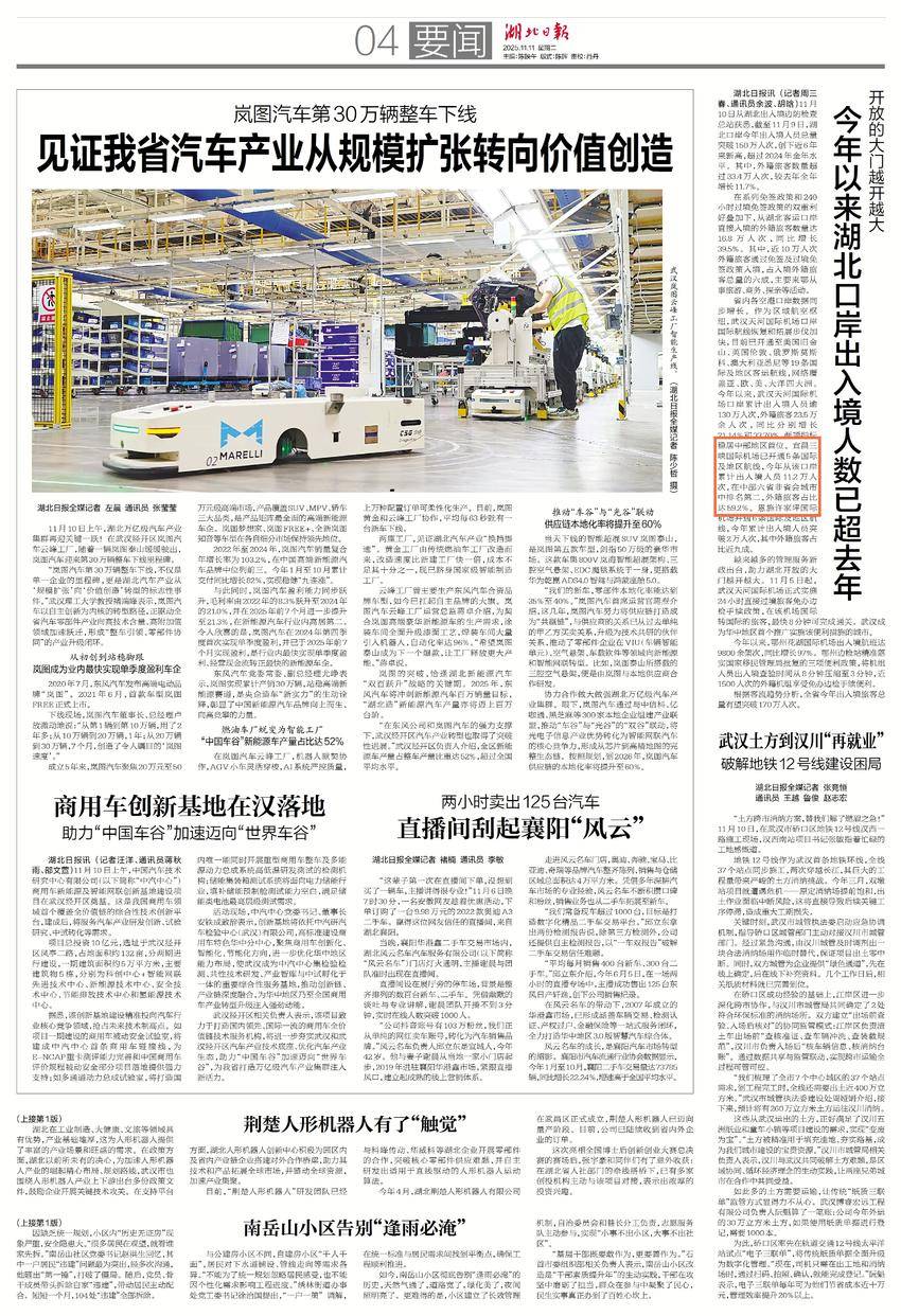 今年以来湖北口岸出入境