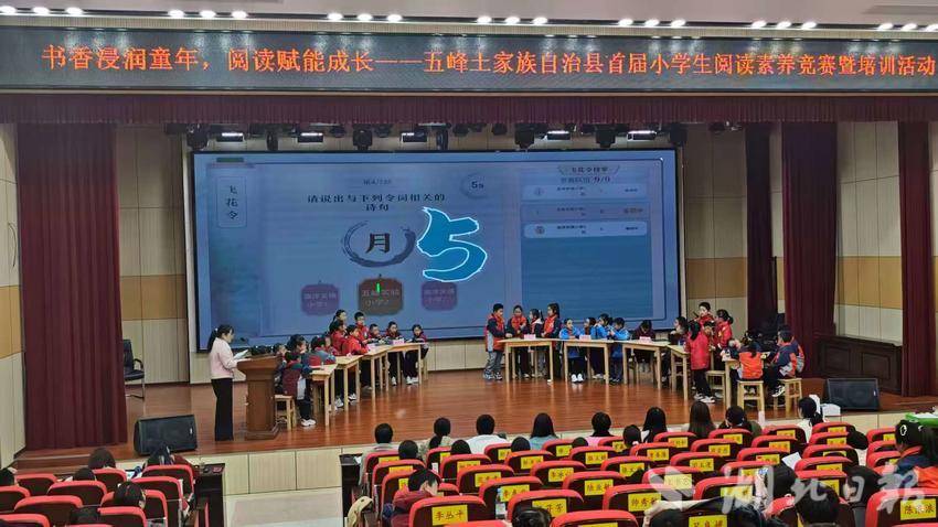 大赛设“阅读知多少”“你说我猜”“阅读快抢答”“飞花令”四个环节,层层推进,全面考查学生的阅读积累、表达与协作能力。选手们在“阅读知多少”中沉着应答,在“你说我猜”里默契配合,“阅读快抢答”环节紧张激烈,“飞花令”中诗词佳句频出,充分展现五峰学子的语文素养与文化积淀。