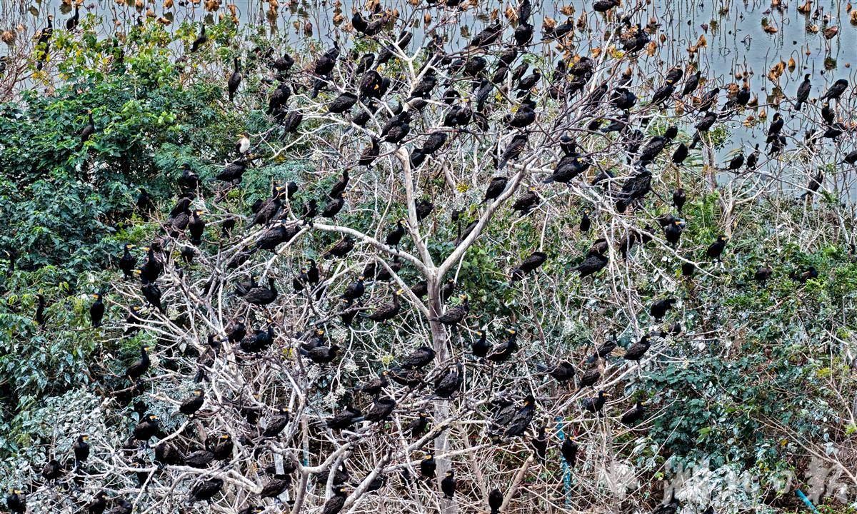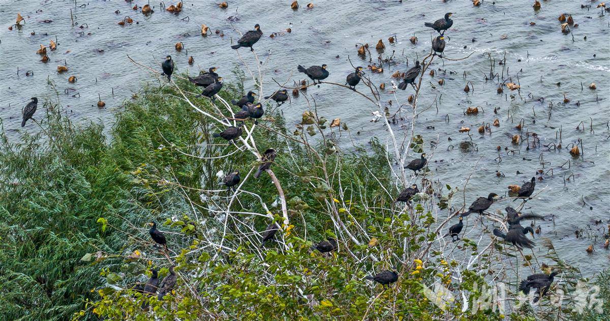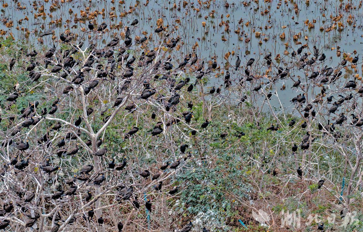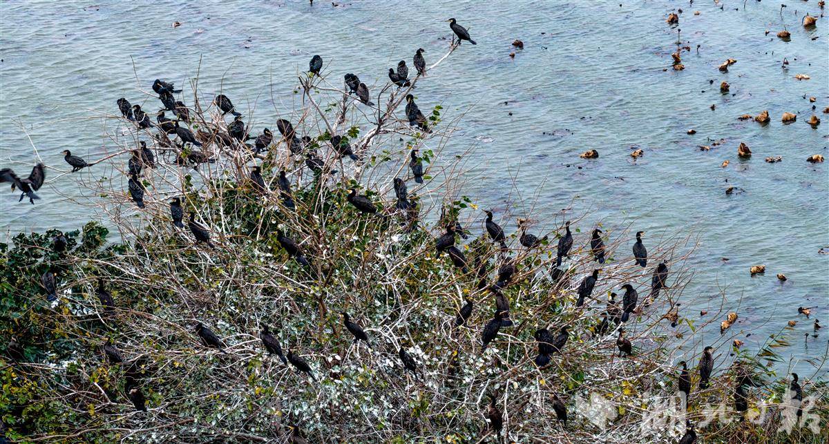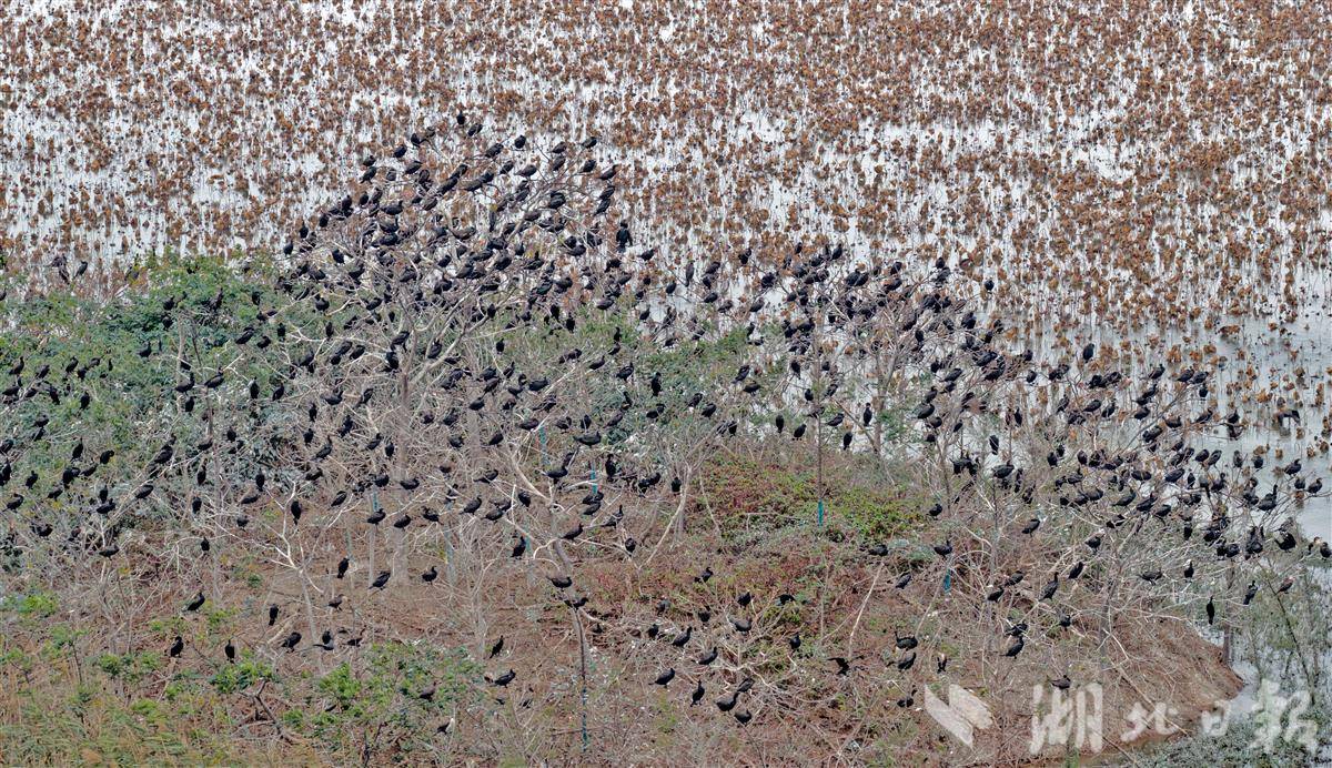 11月10日,荆州菱角湖湖面小岛上鹭鸶成群栖息,湖面上已有候鸟陆续抵达越冬,荆州市各主要湿地即将进入候鸟“迎来送往”的繁忙季节。