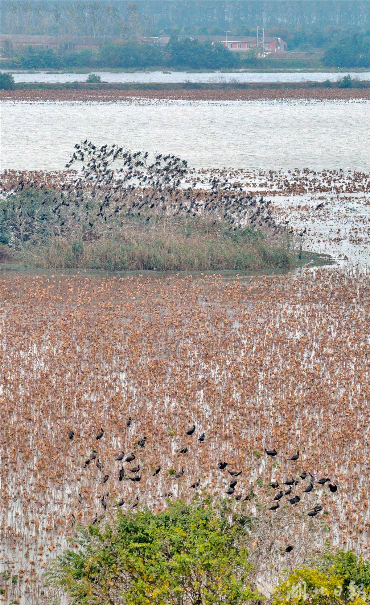 近年来,荆州菱角湖国家湿地公园加大生态保护投入,通过改善湖面水质、科学控制莲藕种植、恢复芡实等水生植被,为鸟类营造了优良栖息地,菱角湖湿地也逐渐成为南来北往候鸟迁徙通道上重要的“能量补给站”。(湖北日报全媒记者 刘曙松 通讯员 肖敏 摄)
