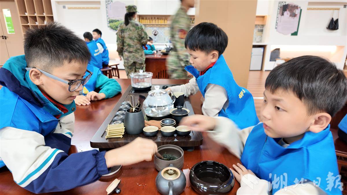 “不仅可以学茶相关知识,还能现场自己动手,感觉非常有趣。”在《一茶之识·一味之悟》现场,学生吴馨雨开心表示,在课堂上,老师通过PPT演示,为他们讲解了茶的六大品类,分别是绿茶、白茶、黄茶、红茶、清茶、黑茶,自己还按照老师教的步骤,动手泡了一壶绿茶,感觉收获颇丰。而坐在她旁边的同学赵芷悦则表示,学习了茶艺知识后,回家后一定要给爸爸妈妈展示一下。