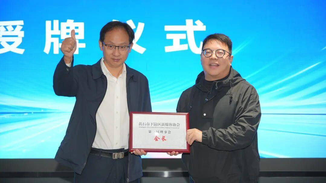 (黄石市委宣传部副部长、市委网信办主任万金光为会长李宁授牌)