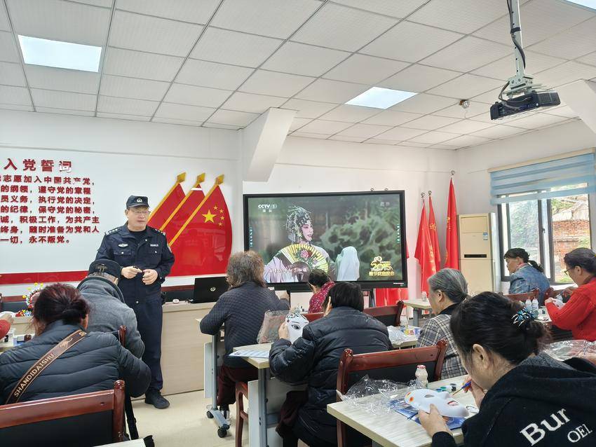 随后,现场还播放了经典的京剧、黄梅戏以及少数民族特色戏剧片段(藏戏、傣戏等),大家共同欣赏不同民族的戏曲。遇到熟悉的唱腔唱段,有人甚至边打拍子边跟着哼唱起来。戏迷陈阿姨和王阿姨还主动登台为大家清唱展示了黄梅戏《女驸马》、革命样板戏《红灯记》,博得了台下一片掌声。