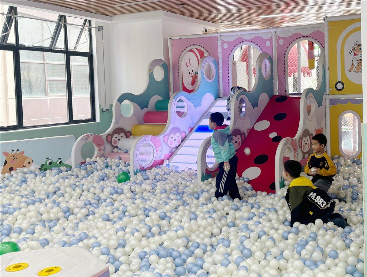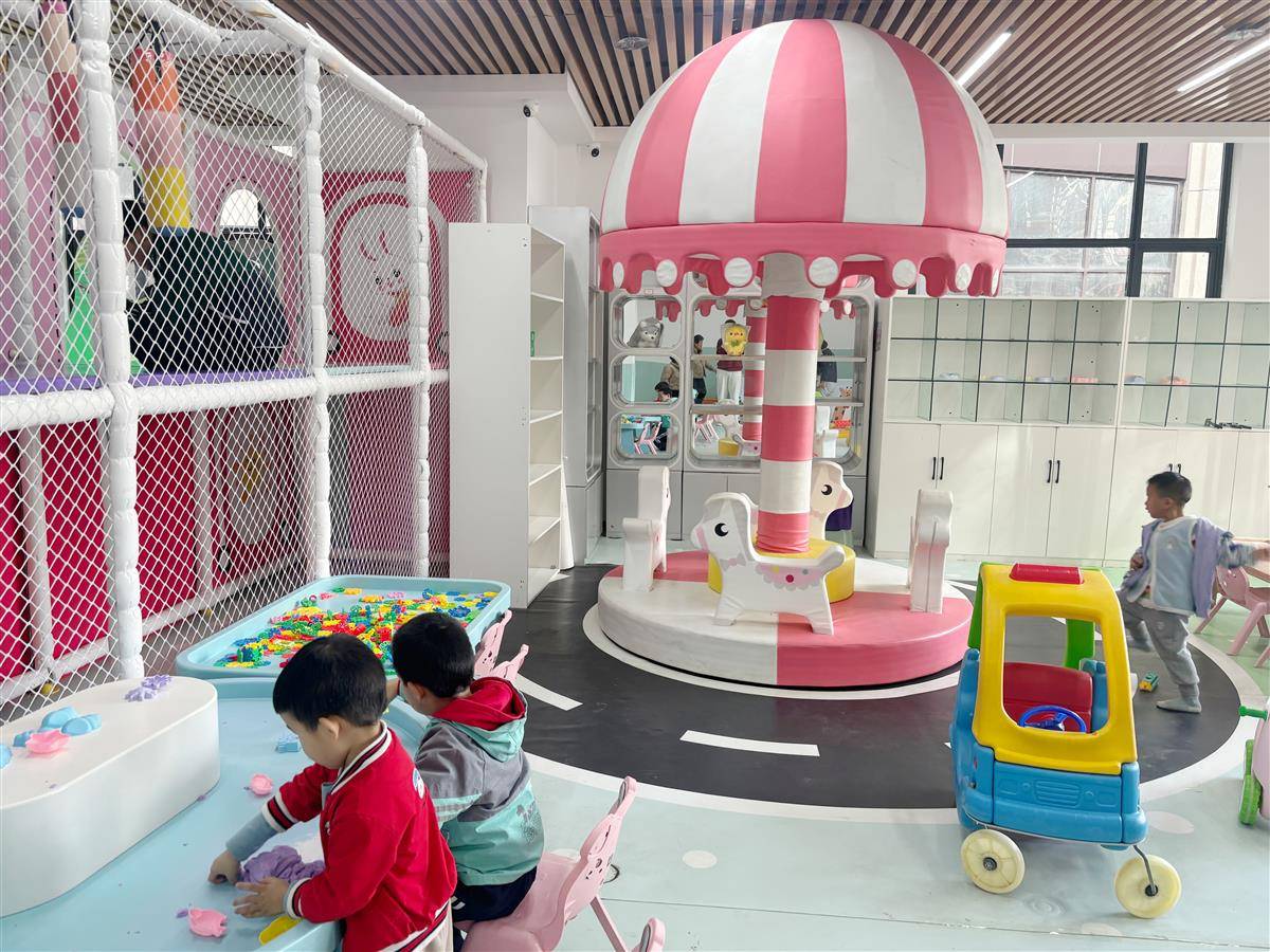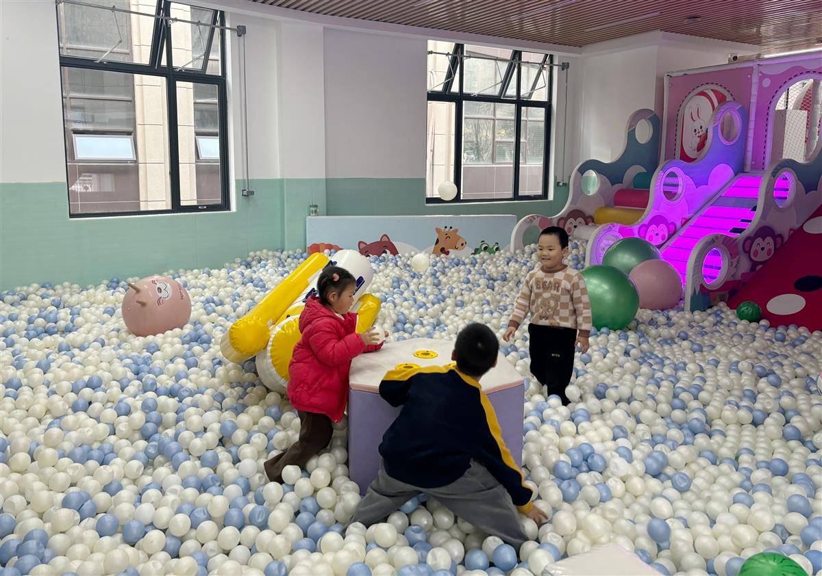 在开放式服务台前,社区工作人员汪明月热情接待了王静。了解到她的需求后,汪明月熟练地指导她打开小程序,一步步填写婴幼儿姓名、证件号等信息。短短10分钟,王静就在手机上完成了所有申请步骤。当她转身去找儿子时,小家伙正趴在海洋球池里,和新认识的小伙伴玩得不亦乐乎。