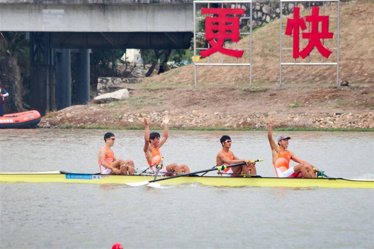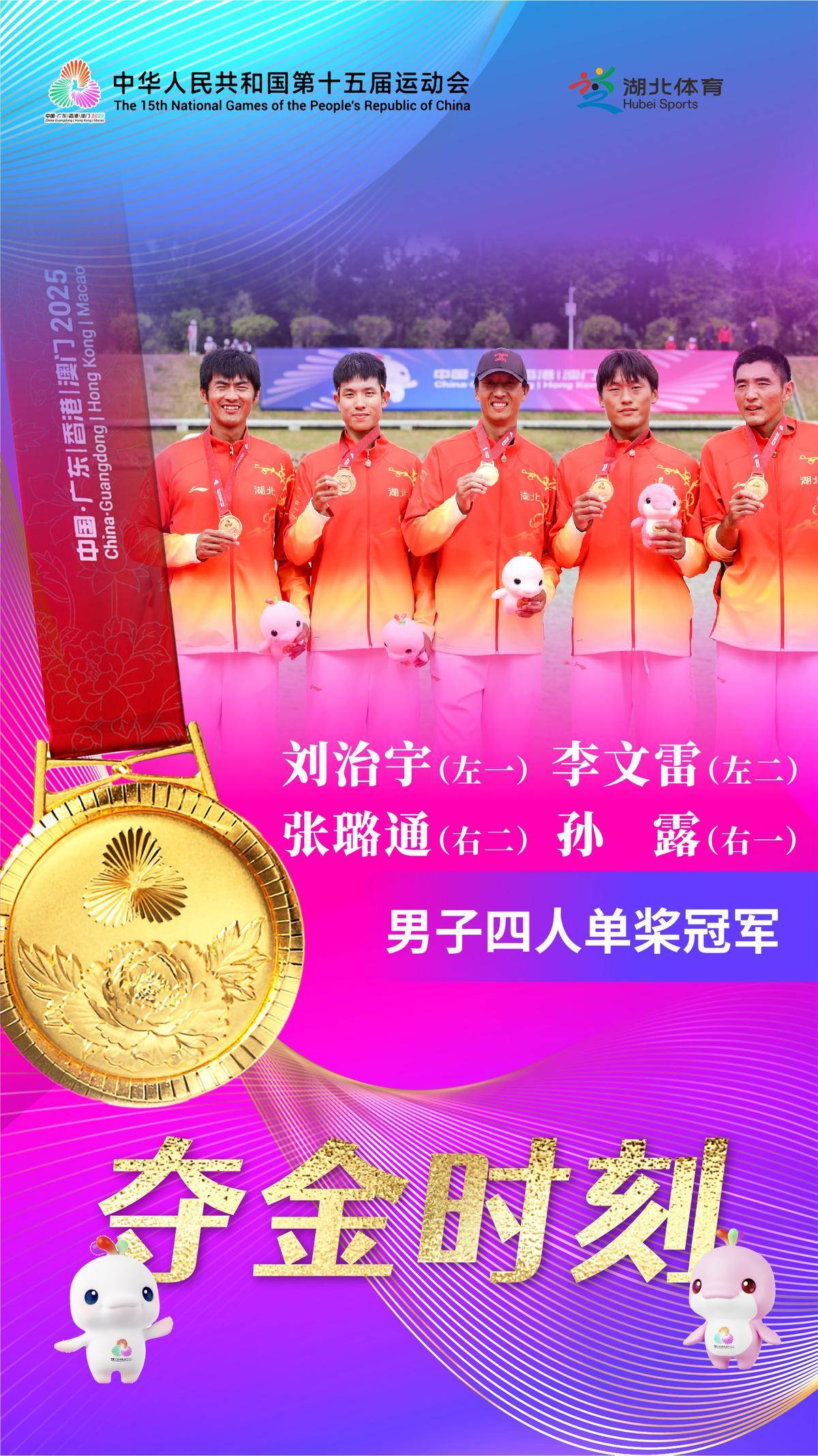 当日上午首先进行的是男子四人单桨决赛。湖北队派出由李文雷、张璐通、刘治宇、孙露组成的强强组合。比赛伊始,四条赛艇齐头并进,竞争异常激烈。中段过后,湖北四名健儿凭借默契的配合、强有力的划桨节奏和出色的体能储备,逐渐确立领先优势。他们动作整齐划一,赛艇如离弦之箭般破开水面,最终以4分20秒67的绝对优势率先冲过终点,成功问鼎冠军。这枚金牌不仅为湖北赛艇队取得十五运会开门红,也是湖北体育代表团在竞技项目上收获的第五金。