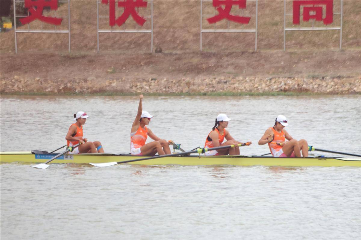男队“F4”的胜利极大地鼓舞了全队士气。在随后进行的女子四人单桨决赛中,由吴咏梅、林心玉、巨蕊、王子凤组成的湖北女队闪亮登场。四位巾帼英雄自出发便先声夺人,牢牢占据领先位置。她们桨频稳定、力量十足,在水中划出一道道优美的波纹,将对手逐渐甩在身后。全程保持领先的她们没有给对手任何机会,最终凭借无可争议的表现和4分49秒76的用时,稳稳地斩获金牌。男子八人单桨比拼,由曹闯、沈余双、李春、张茂林、杨月、丛胜、刘荡、郑亚明、宋佳怿(舵手,女)组成的湖北队以4分08秒26冲过终点,拿到一枚来之不易的银牌。