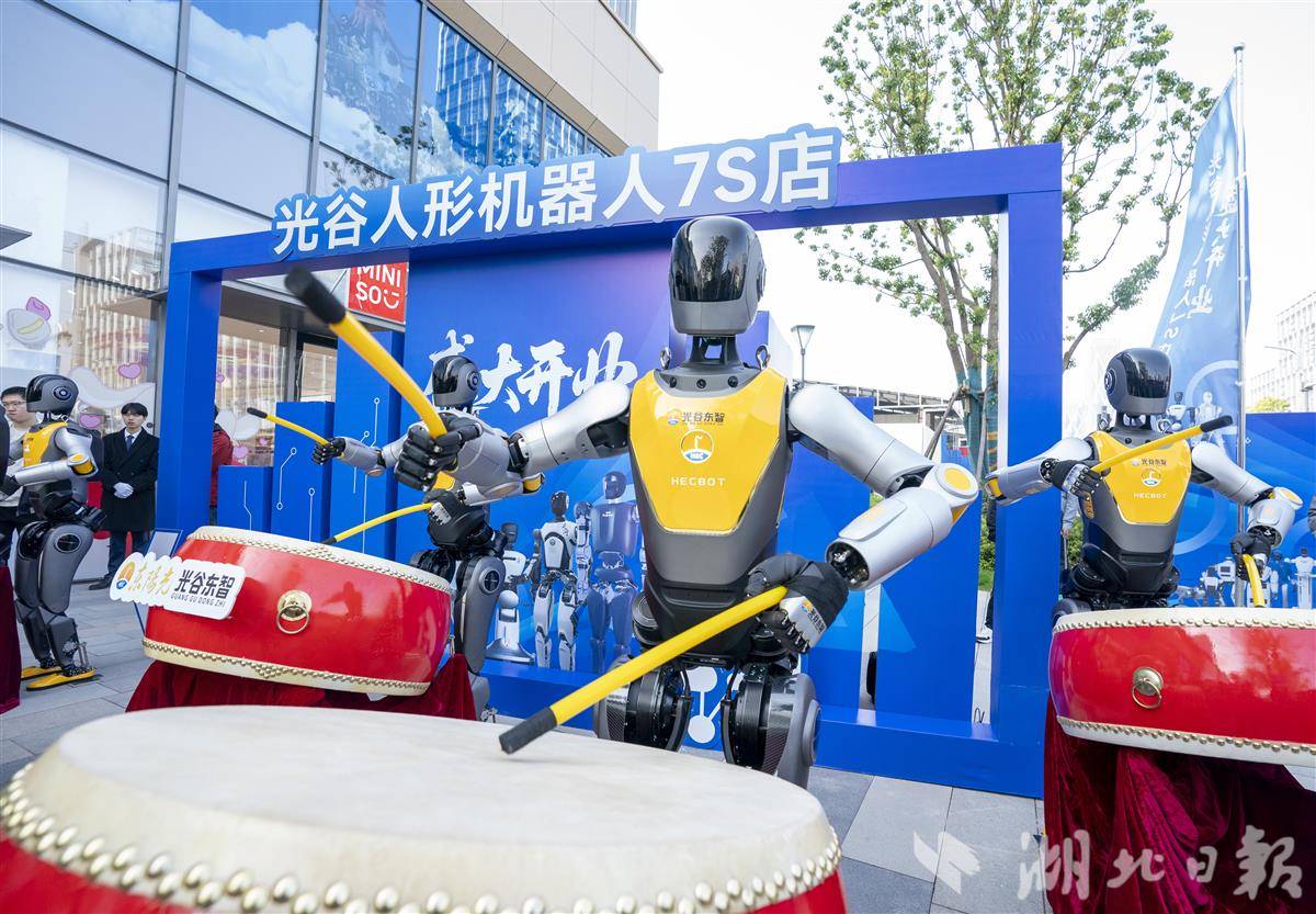 当天,全国首家人形机器人7S店,在光谷创新天地商业公园开业。店内,一群“机器人同事”整装待发,迎接第一批客人。