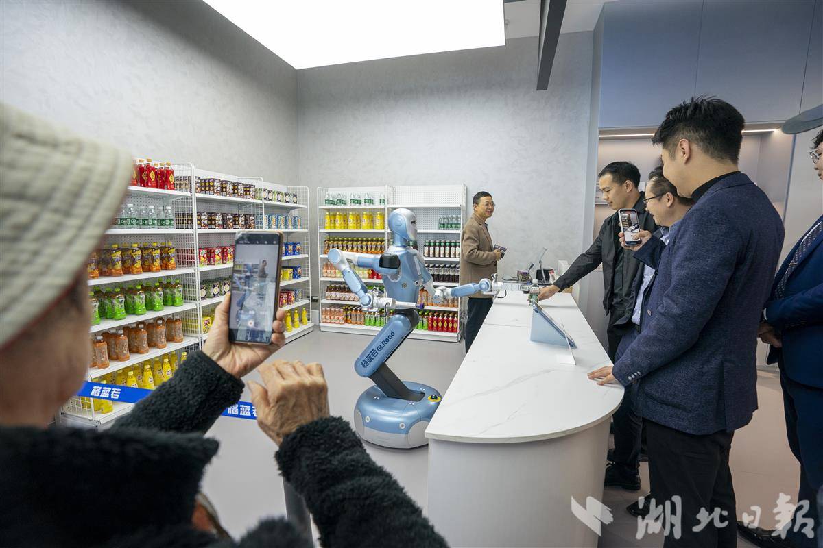 顾客在机器人7S店体验机器人超市服务。 (湖北日报全媒记者 魏铼 摄)