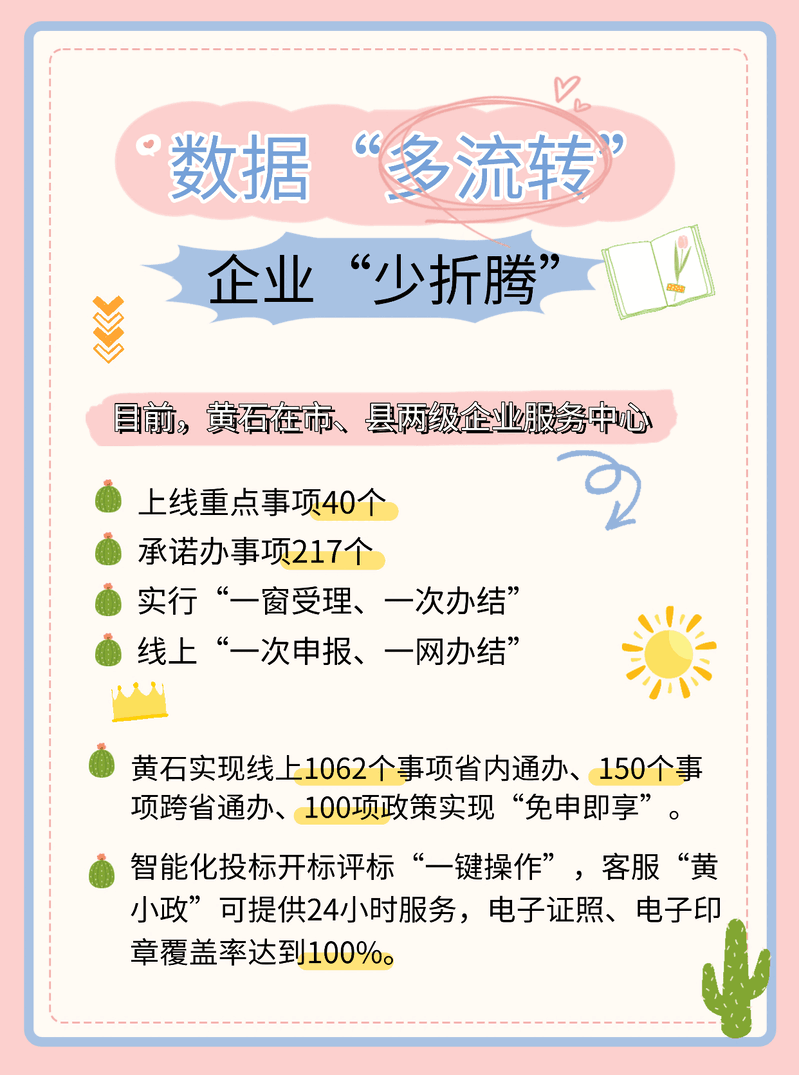 建设企业服务中心,实现从单个事项的“点状突破”,到系统集成的“面上跃升”,大冶市企业服务中心的实践与探索,正是黄石打破“数据壁垒”、打通“服务堵点”,不断推进政务服务增值化改革取得的典型一例。