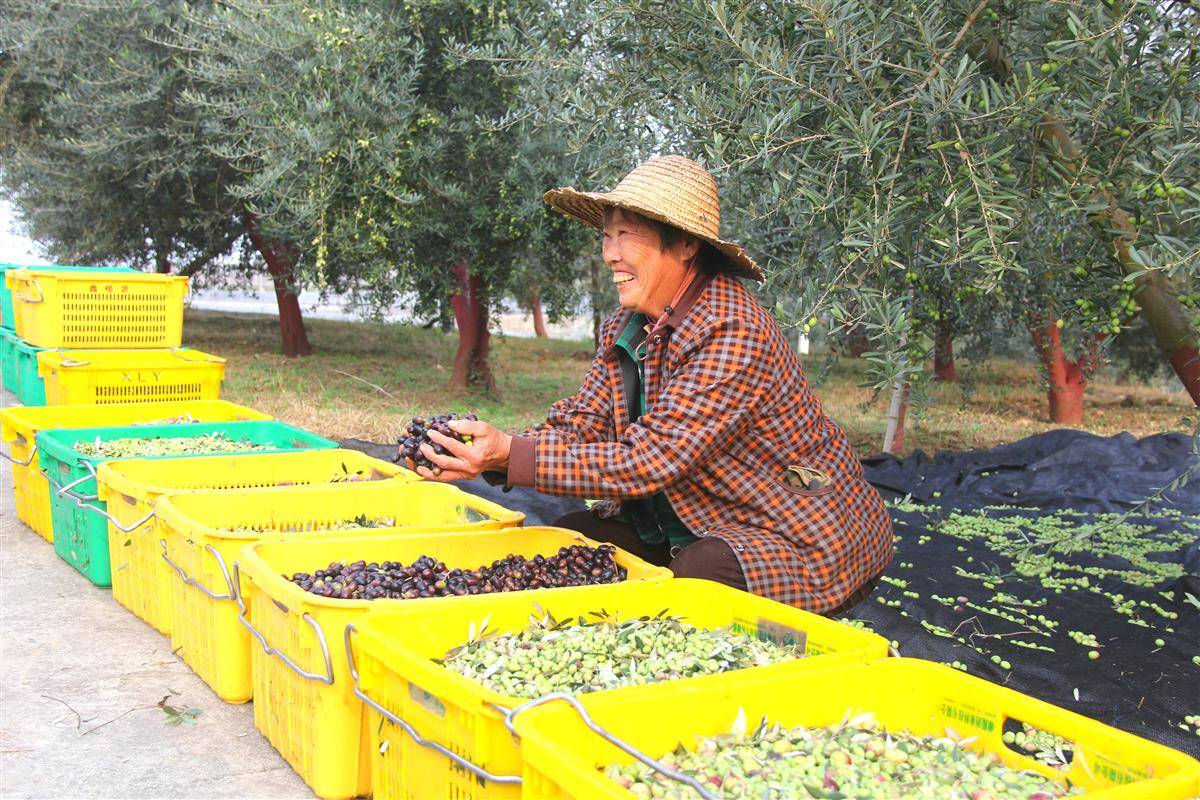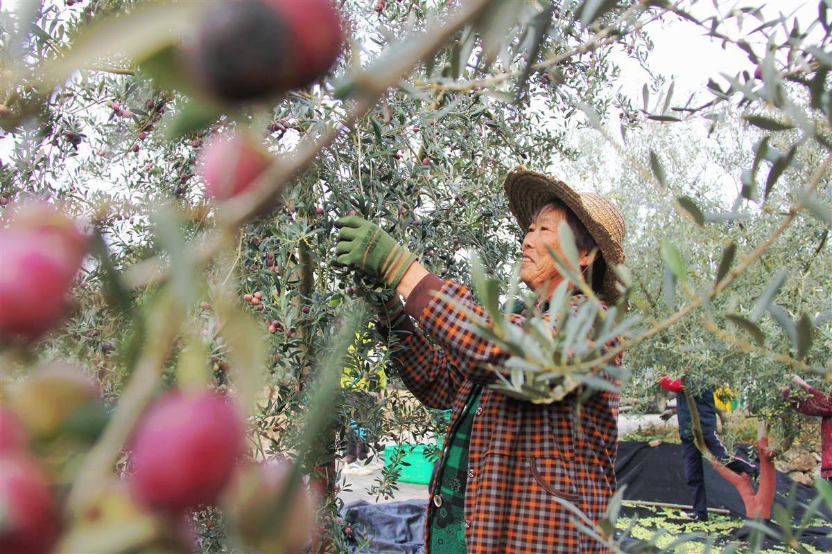 11月6日,十堰市郧阳区杨溪铺镇东方橄榄园内,油橄榄迎来丰收。