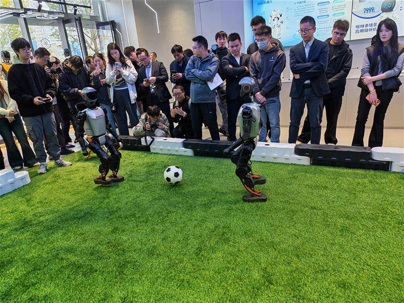 在店内,顾客不仅能现场购买人形机器人,还能定制功能、申请金融支持,买机器人就像买车一样方便,吸引不少消费者停留驻足。