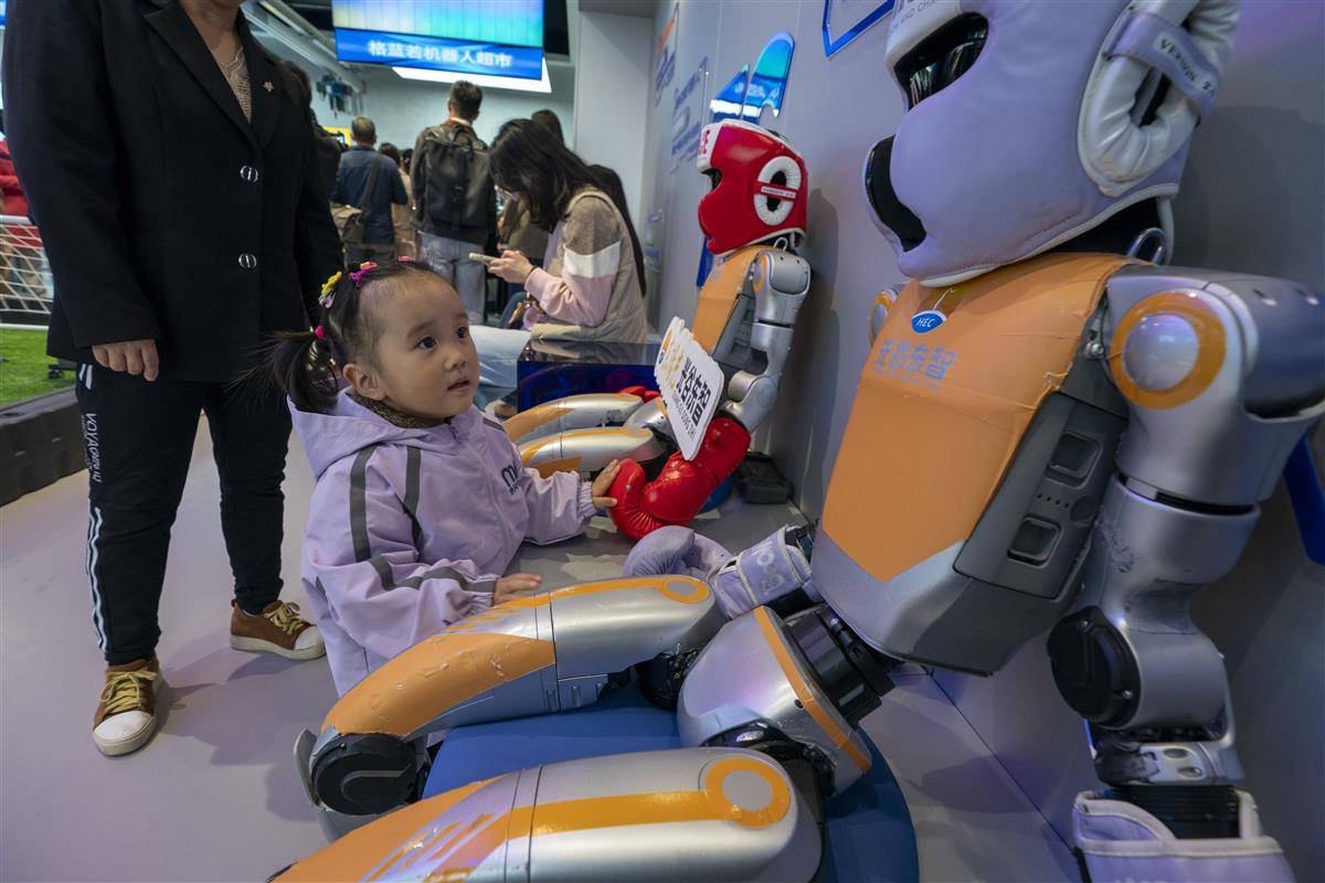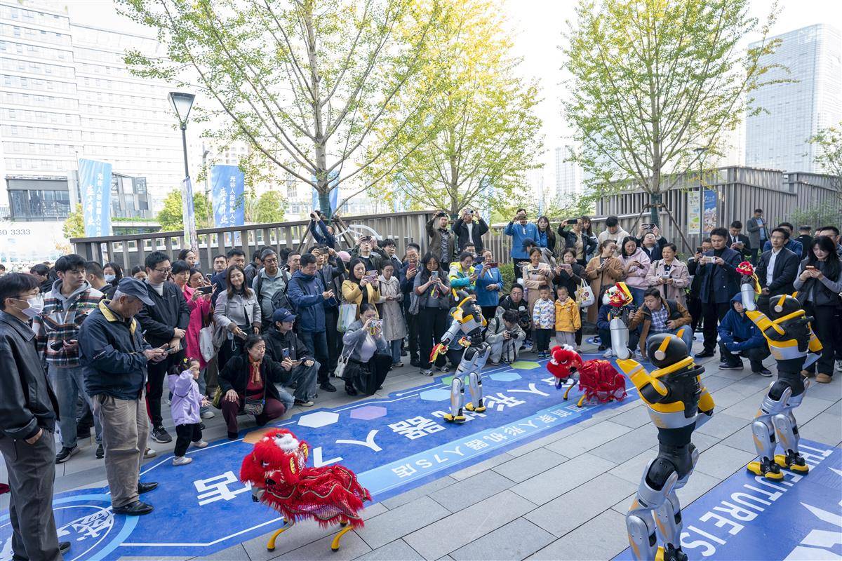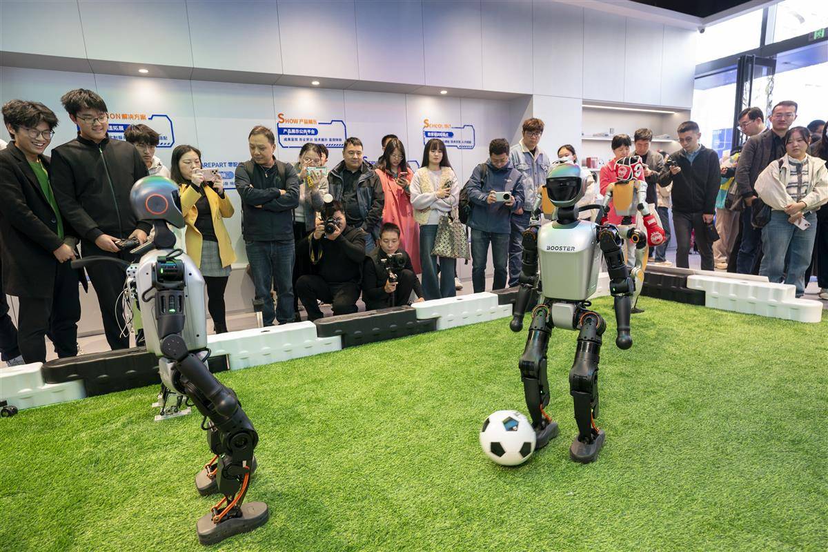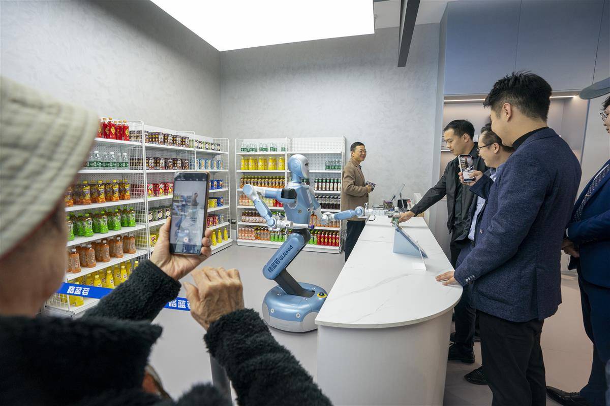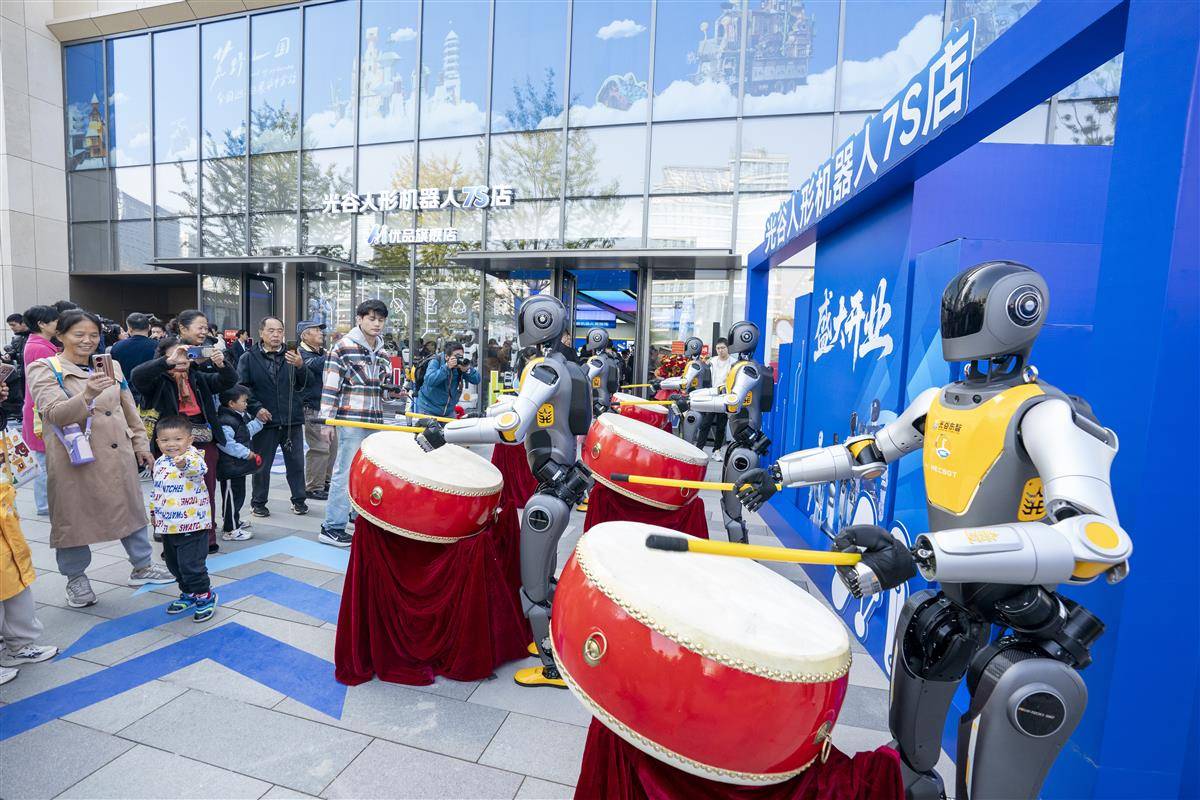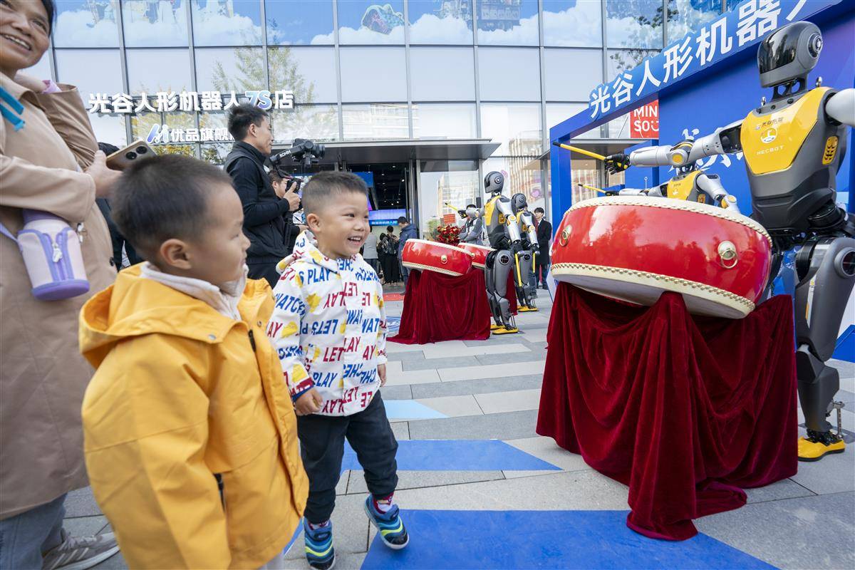 11月11日,全国首家人形机器人7S店在光谷开业,湖北自主研发的人形机器人家族集中展示,正式以明码标价的形式走向市场。当日,位于光谷创新天地商业公园的这家人形机器人7S店内,陈列着几十台规格、功能各不相同的机器人产品,这些产品均由光谷企业制造。每一位到店的顾客不仅能够观赏工业制造、文旅导览、康养护理、特种作业等十余个应用场景的机器人产品及其配件体系,还可近距离感受机甲对战、足球机器人对抗赛所带来的紧张与刺激。 (湖北日报全媒记者 魏铼 摄)