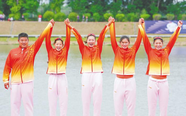这条冠军艇上,林心玉、巨蕊、王子凤都是名将。陕西全运会,林心玉就曾助力联合队夺得该项目金牌,巨蕊和王子凤也随联合队斩获女子八人单桨金牌。此番三位冠军联袂出战,再次将金牌收入囊中。林心玉动情地说:“这可能是我最后一届全运会了,我一定要为队伍争取荣誉!”