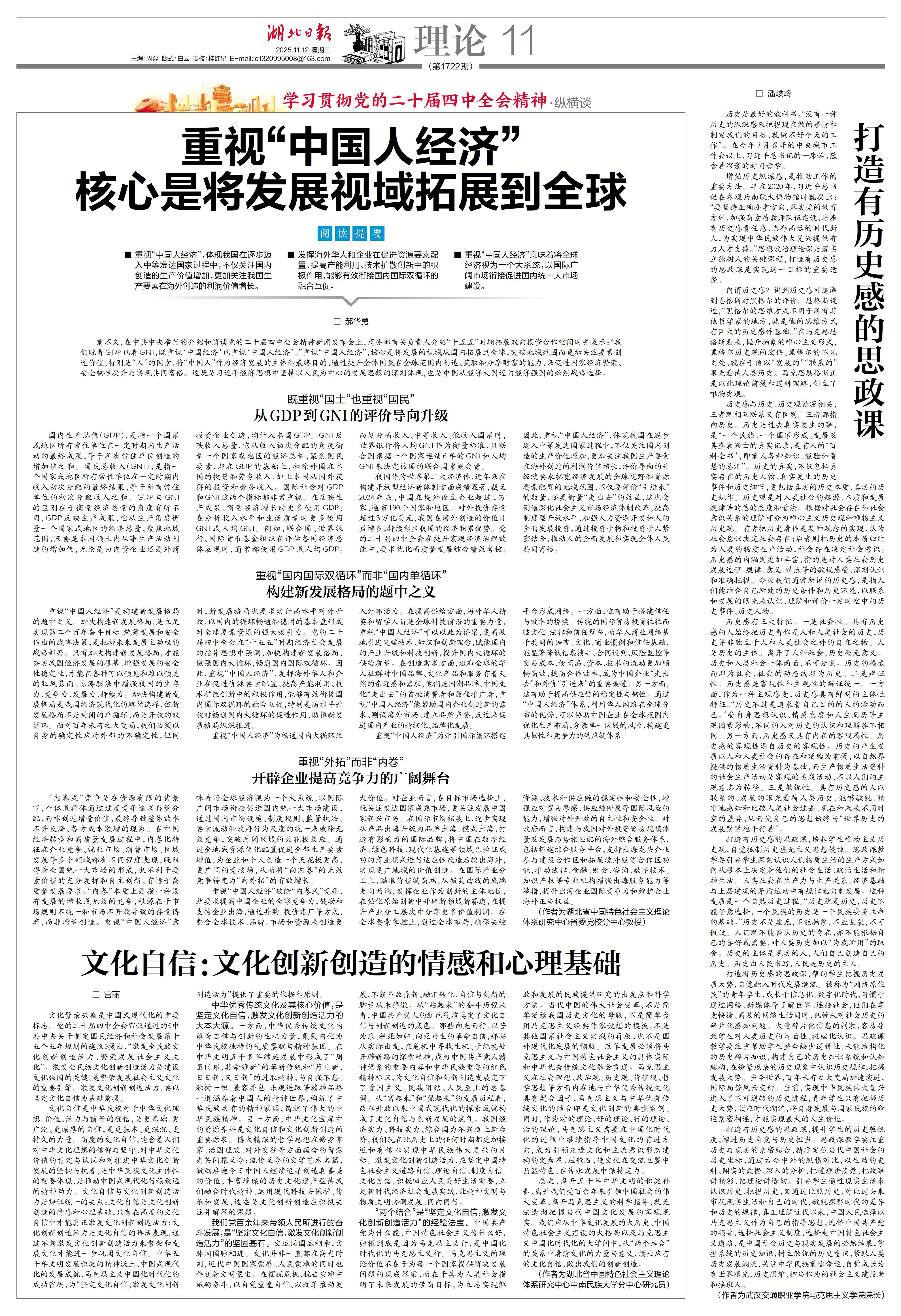 前不久,在中共中央举行的介绍和解读党的二十届四中全会精神新闻发布会上,商务部有关负责人介绍“十五五”时期拓展双向投资合作空间时并表示:“我们既看GDP也看GNI,既重视‘中国经济’也重视‘中国人经济’。”重视“中国人经济”,核心是将发展的视域从国内拓展到全球,突破地域范围而更加关注要素创造价值,特别是“人”的因素,将“中国人”作为经济发展的主体和最终目的,通过提升全体国民在全球范围内创造、获取和分享财富的能力,来促进国家经济繁荣、安全韧性提升与实现共同富裕。这既是习近平经济思想中坚持以人民为中心的根本立场的深刻体现,也是中国从经济大国迈向经济强国的必然战略选择。