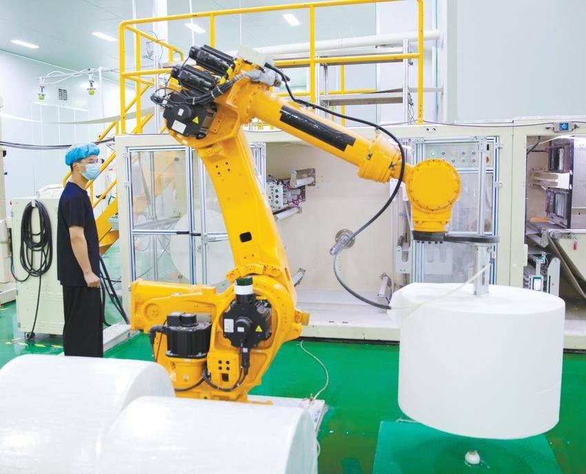 湖北日报客户端讯(通讯员郑恒)位于彭场镇的湖北德盈防护材料有限公司,聚焦医疗防护与应急公共安全物资研发、生产及销售。公司3条智能化医用护垫生产线已投产。图为11月9日,该公司恒温无菌生产车间一角。