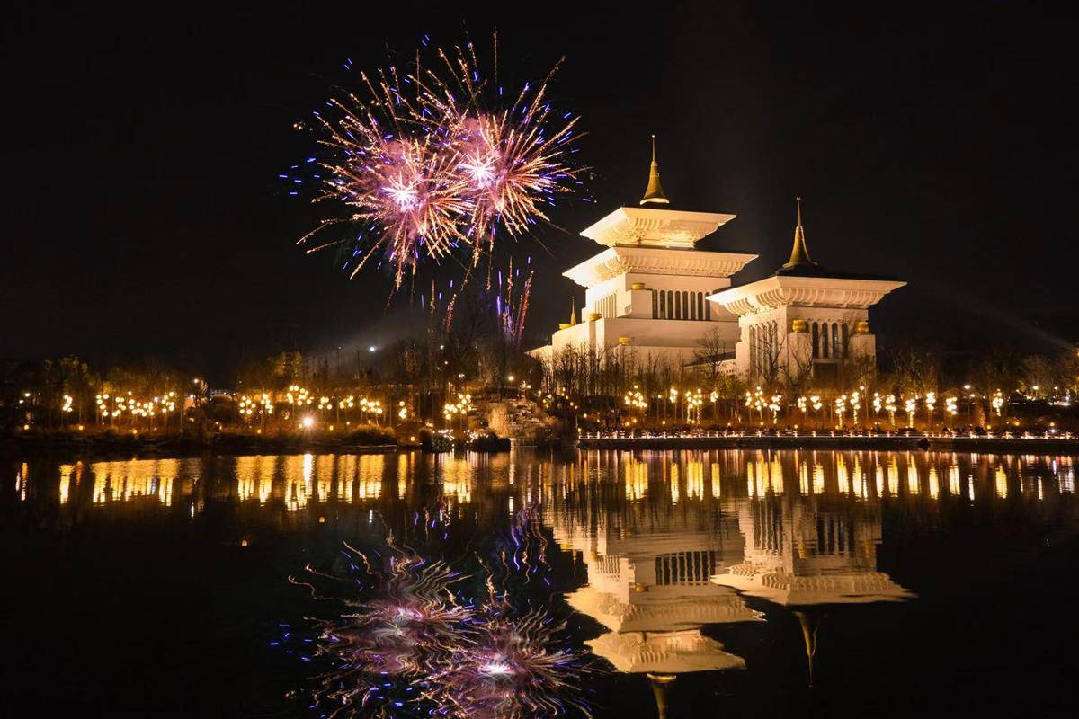 非遗的活化,还离不开科技的赋能。问梅村在黄冈率先打造以《风从东山来》为主题的光影秀,今年又迭代推出全国首个非遗主题的“天空剧场”。近千架无人机与绚丽的焰火表演精准联动,成为把游客留下来的压轴大戏。今年国庆中秋双节期间,“会唱黄梅戏的机器人”又火爆全网,成为热门话题。