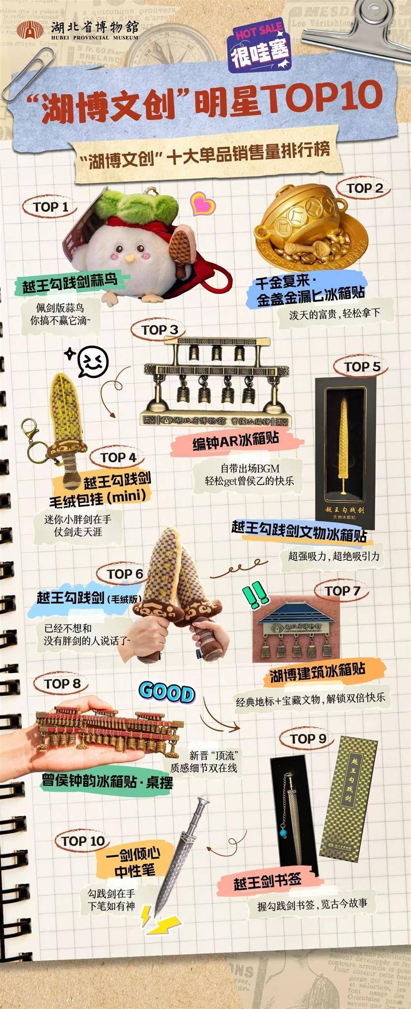 湖北日报讯(记者海冰)网友戏称“没有人可以空手走出‘湖博文创’”,为给来自全球各地的游客“买买买”提供参考,11月10日,湖北省博物馆首次发布“湖博文创”销售排行榜。