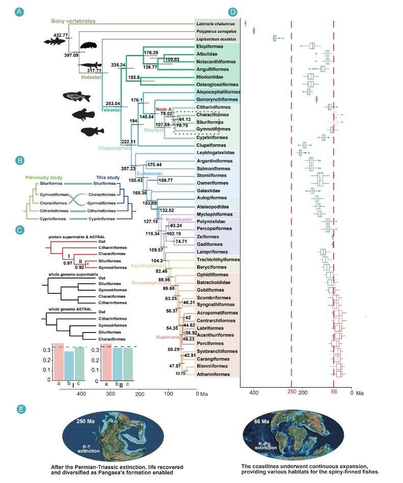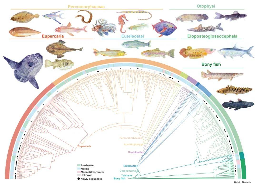 图2:利用全基因组比对数据重建了覆盖所有目水平谱系的真骨鱼系统发育关系。(论文插图,受访者提供)。