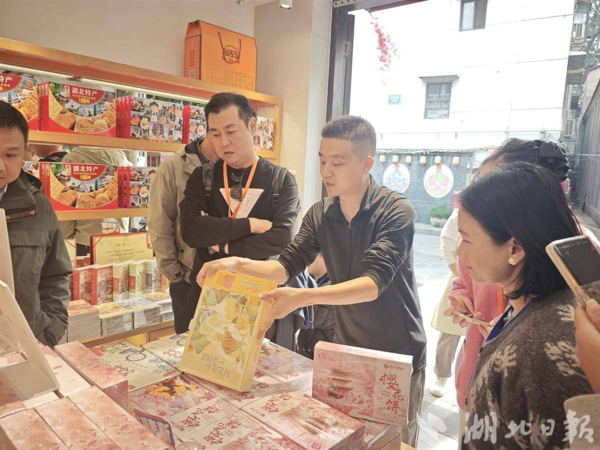 昙华林历史文化街区内的扬子江门店同样引人注目。品牌负责人朱棣文介绍了将非遗糕点技艺与城市IP结合的创新产品:“自2018年推出以来,我们的樱花饼广受欢迎。这款融合樱花元素与汉式糕点工艺的伴手礼,既美观又可口,年销量已突破10万份。”精美的产品引来旅行商纷纷拍照记录。