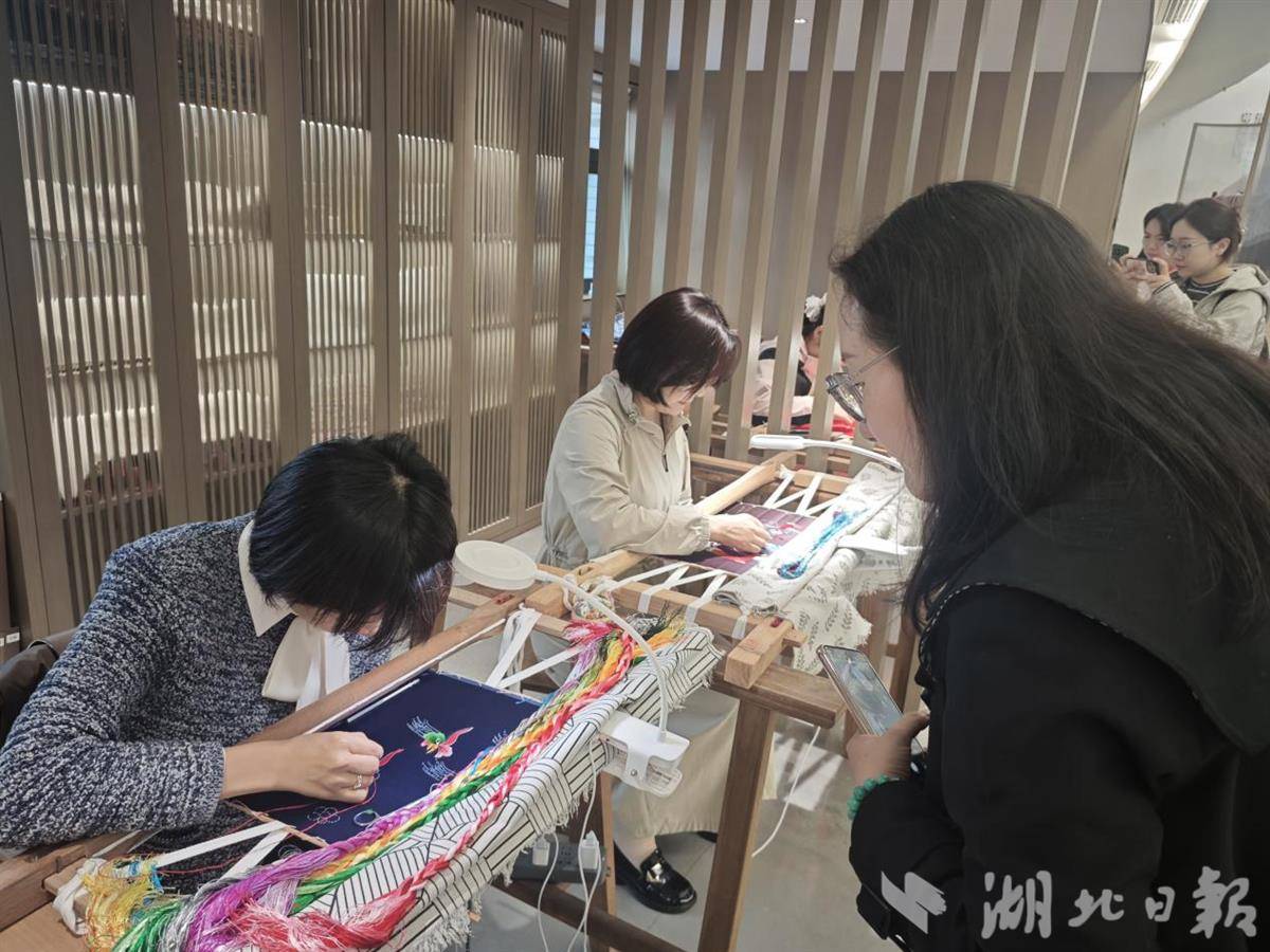 活动期间,代表们先后走访江汉区汉口非遗圈、武汉杂技厅、天一戏院等代表性点位,亲身体验非遗融入现代生活的多元形态。在汉口非遗圈的汉绣工作室,传承人现场演示汉绣技艺,一针一线勾勒出浓郁的楚文化韵味,绣品上龙凤、花鸟栩栩如生。代表们驻足欣赏,详细询问汉绣体验课程的开发进展,并就非遗研学线路合作展开交流。