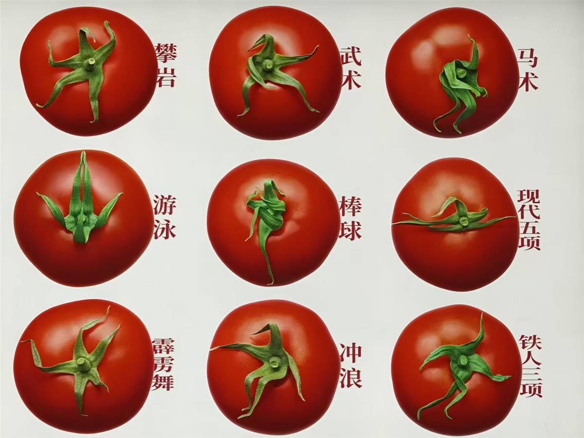 34个番茄上形态各异的绿梗,对应34种比赛项目,5瓣叶片被创作者拟人化,摆出生动的运动姿态。这些“想赢的番茄”(广告词),一经发布,便收获了大量网友点赞:“眼前一亮的广告”,“我真的会在边上站一会儿把每个番茄都看一遍”。