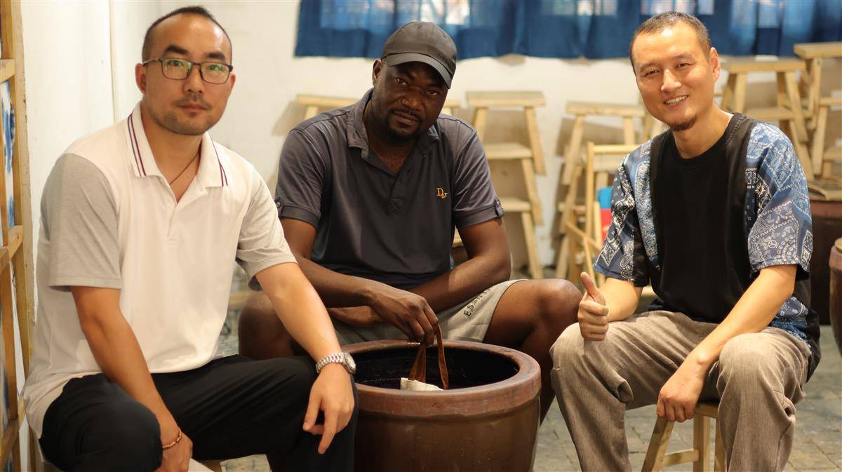 外籍友人体验古法蓝染。(曾亚兰 供图)