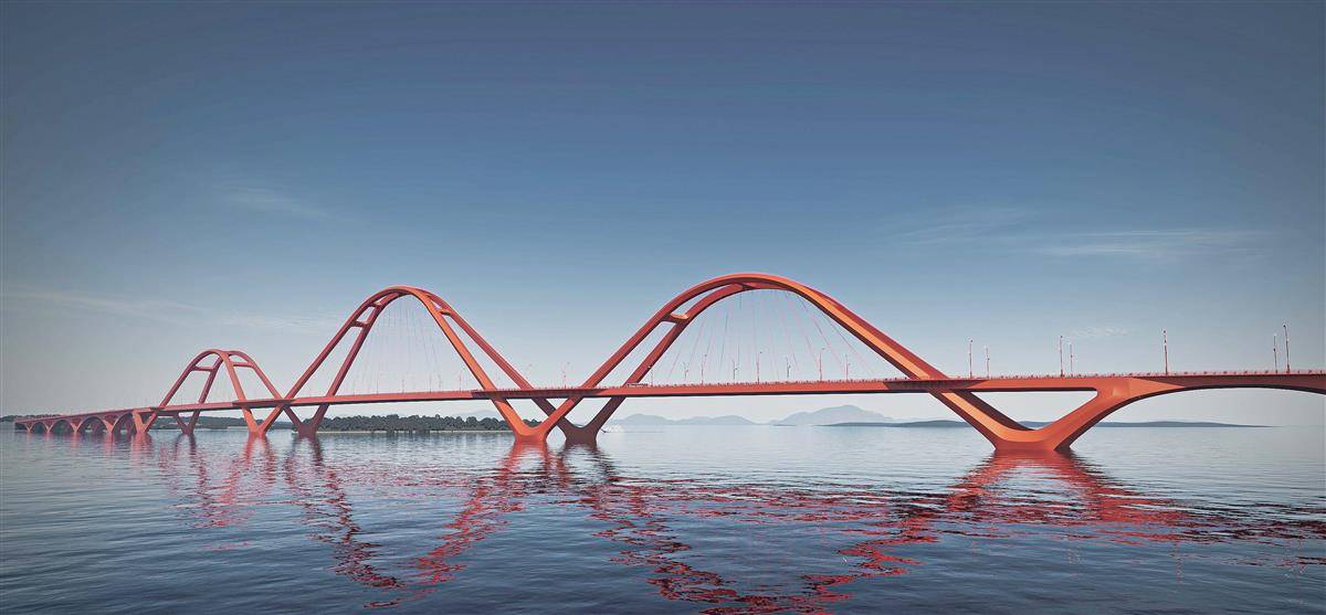 究其原因,梁子湖是武昌鱼的国家级种质资源保护区,水质敏感,生态要求极高。为减少对水体和水生生物的影响,大桥设计为中承式多连拱桥,尽量减少桥墩数量,降低对湖区的影响。