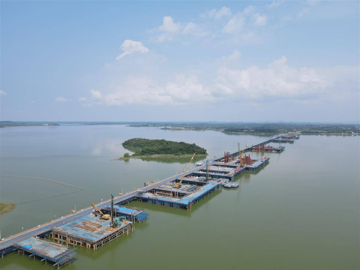 宏伟的背后,是高难度的施工挑战。首先是湖底。“北岸很多是溶洞,打桩就像在‘像在蜂窝煤里插钢钎’。”齐俊鹏形象地比喻。地质的高度复杂性使得桩基成孔难度陡增。工程团队采用“回填黏土加片石”的工艺,反复填充,将一个个隐蔽的空洞夯实。