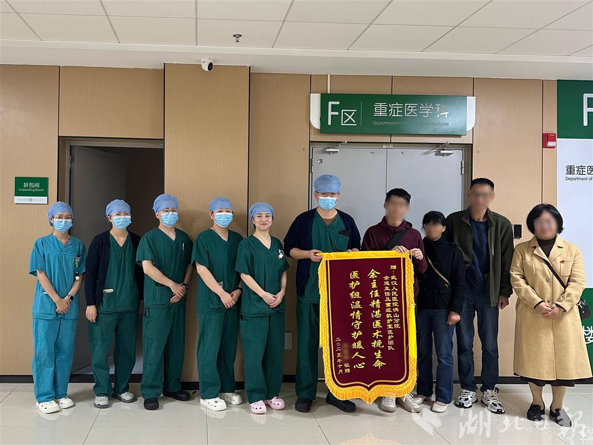 湖北日报讯(记者曾莉、通讯员陈梅仙、何奕、龚雨西)21岁大学生早在地铁站内突发心搏骤停,命悬一线,地铁工作人员、民警紧急施救,120快速转运,医院ICU5天5夜救治,将大学生从死亡边缘拉回。11月7日,他康复后重返武汉大学人民医院(湖北省人民医院)洪山院区,向挽救他生命的医护团队送上锦旗。当天,这名大学生晕倒在地,失去呼吸和心跳。地铁工作人员迅速抵达现场,取出站内配备的自动体外除颤器(AED),与一名热心民警轮流为患者实施胸外心脏按压。这场与死神的赛跑持续了17分钟,直至患者恢复微弱呼吸。随后赶到的120急救人员接手,持续开展心肺复苏,将患者快速转运至武汉大学人民医院洪山院区急诊科。急诊科吕菁君主任团队接力心肺复苏,迅速进行气管插管维持呼吸循环。经抢救,患者恢复自主心律,但仍深度昏迷、四肢抽搐,生命体征极不稳定,随即转入重症医学科继续救治。