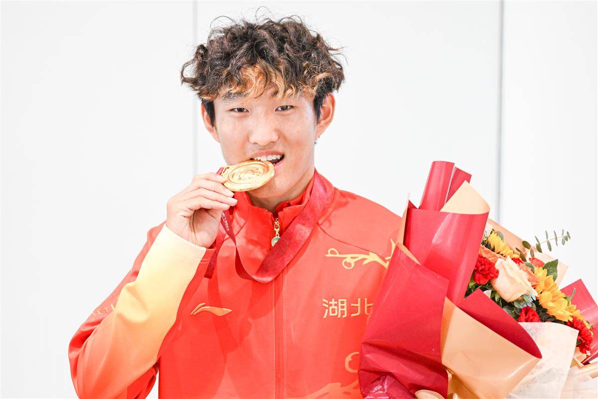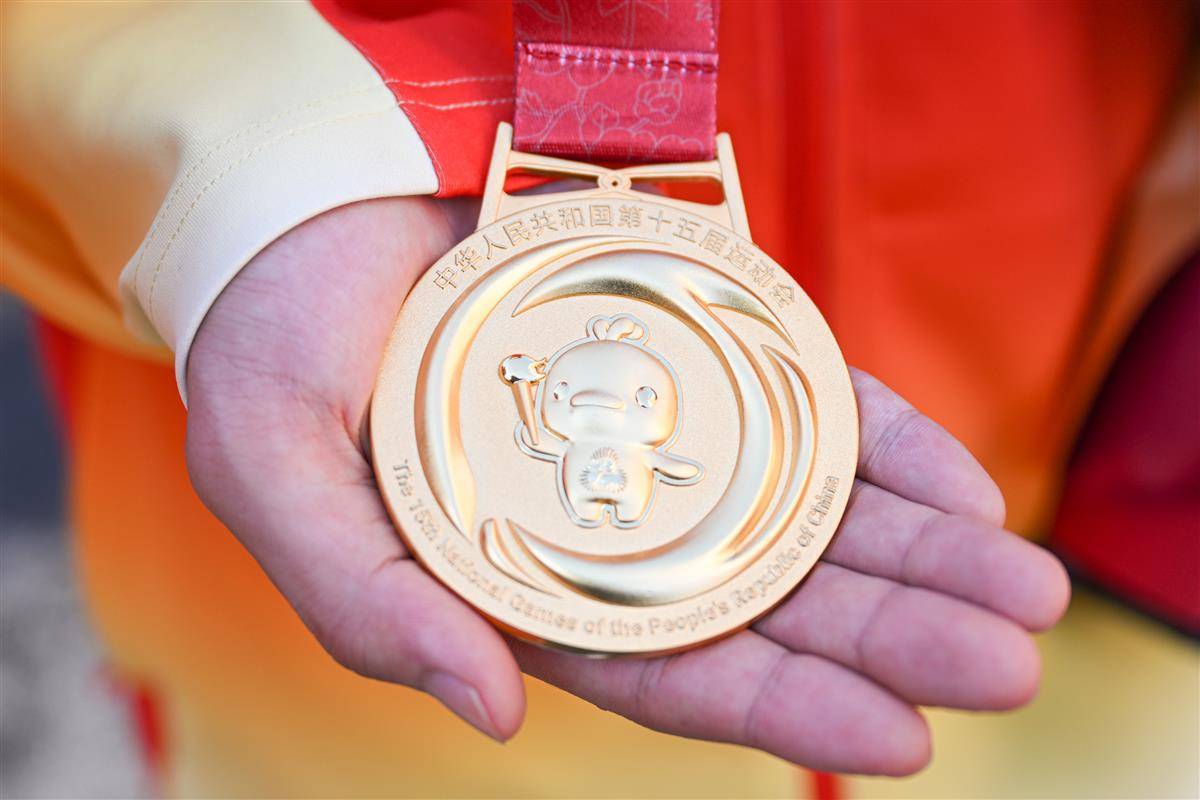 湖北队队员展示全运会金牌。(湖北日报全媒记者 任勇 摄)