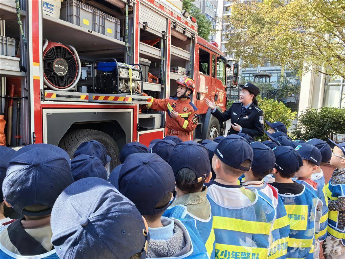 少年警队队员参观消防车。通讯员黄若灵 摄