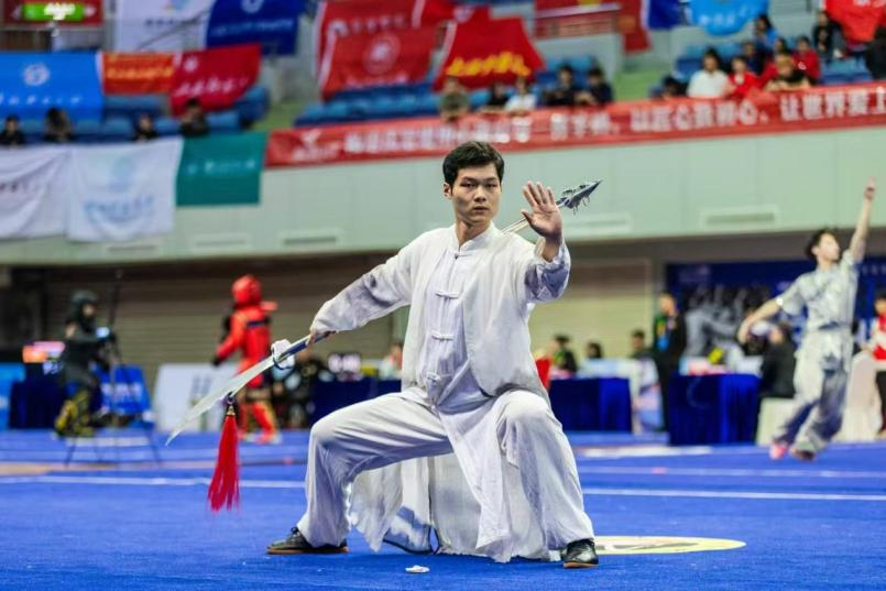 湖北中医药大学武术队角逐现场。