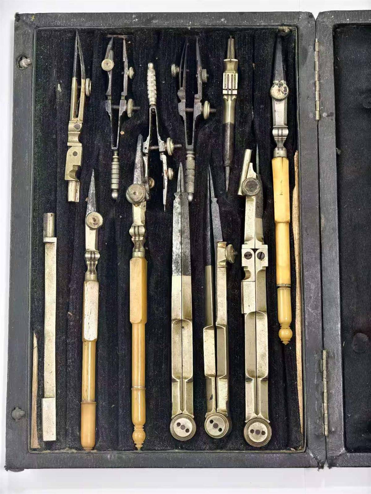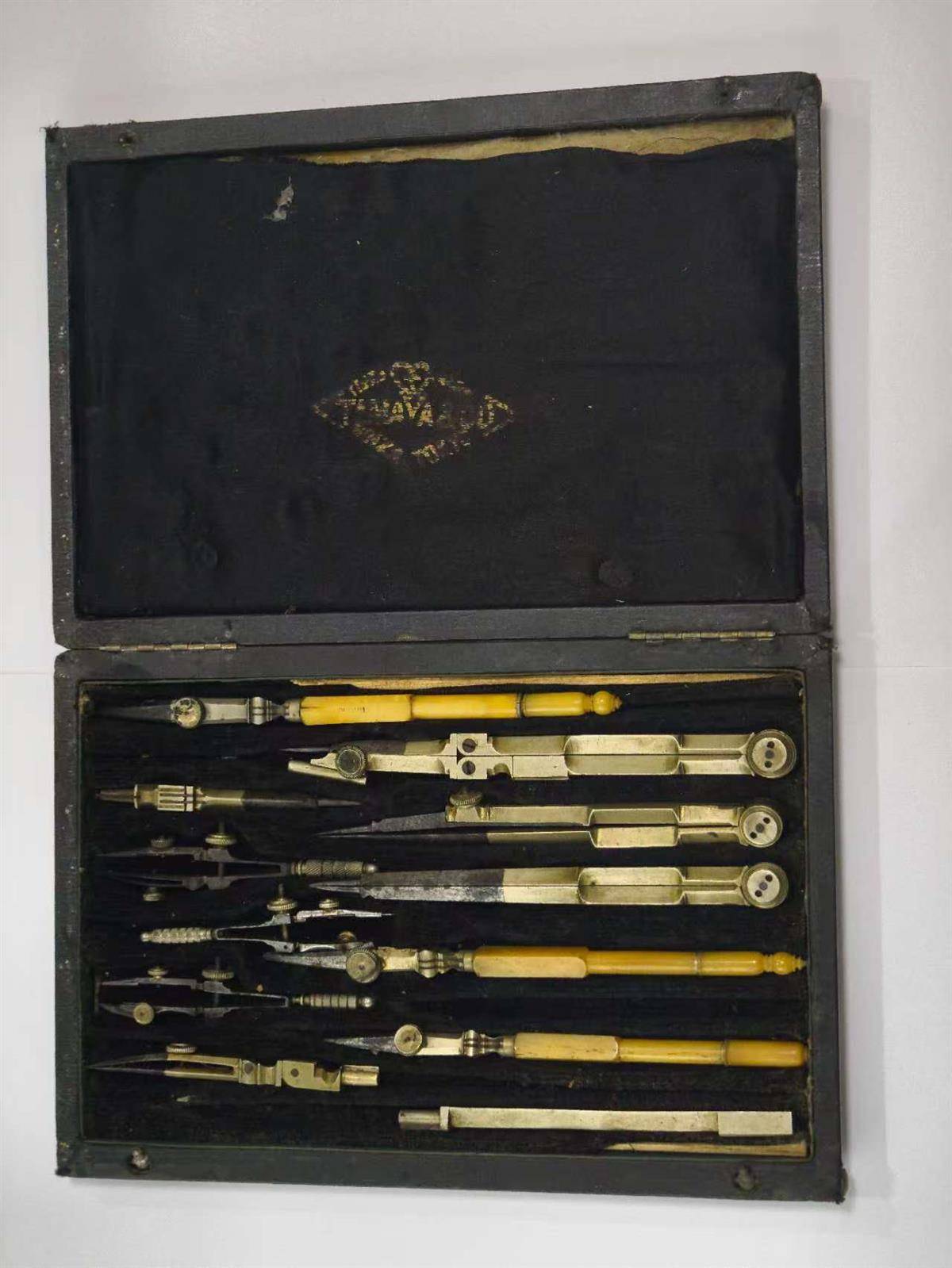 据了解,这套飞行测绘工具是用于飞行导航绘画的,大多是铝合金制品,几件工具手柄由象牙包裹,灵巧精致,虽经岁月洗礼,仍熠熠生辉。