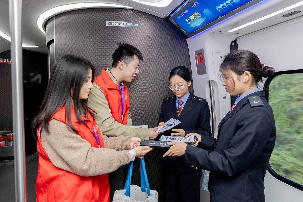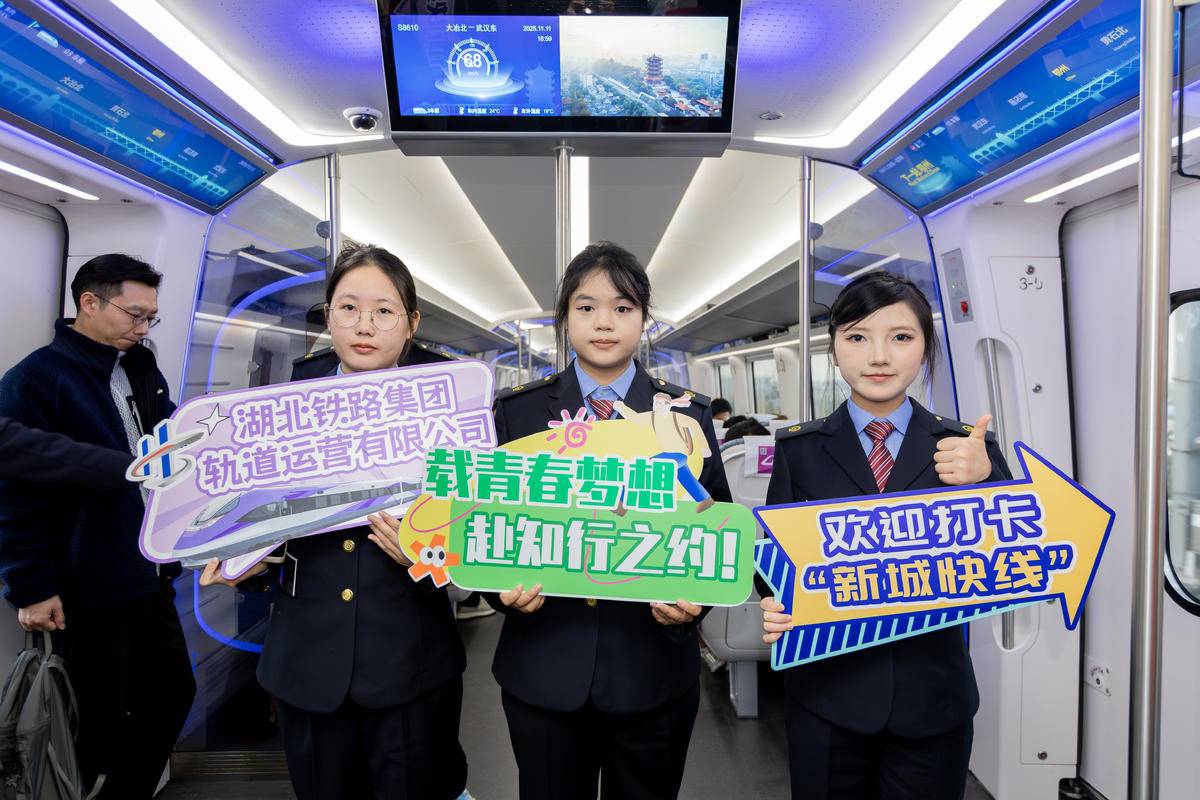 “新城快线”的车厢里,研学乐趣早已提前启航!充足插座与无线充电设备满足实时学习需求,青年志愿服务队打造的“列车文化小课堂”趣味十足,通过互动问答解锁中国铁路发展故事,让旅途成为知识拓展的延伸空间。35分钟直达武汉东站的短暂行程中,同学们在交流探讨中感叹铁路发展成就,“铁路+教育+文旅”的融合模式生动展现,国之重器的震撼、非遗文化的魅力、自然生态的奥秘、科创发展的活力,每一座城市都蕴藏着独特的成长密码。