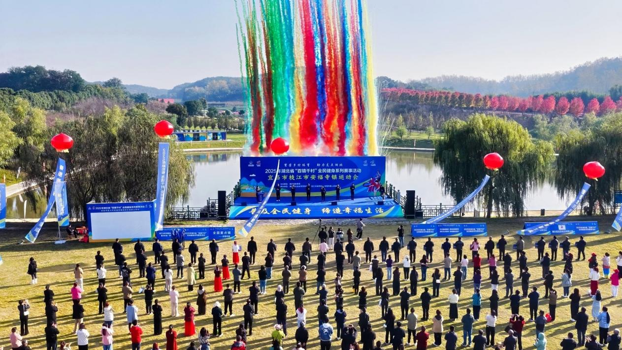 湖北日报讯(记者童军鹏、通讯员罗星棋)11月14日,2025年湖北省“百镇千村”全民健身系列赛事活动第18站在宜昌市枝江市安福寺镇成功举办。来自全镇机关单位、园区企业、村(社区)的29支代表队、近2000人次踊跃参与,打造了一场“百姓身边的运动会”,将全运热潮延伸至基层,让全民健身理念深入人心。
