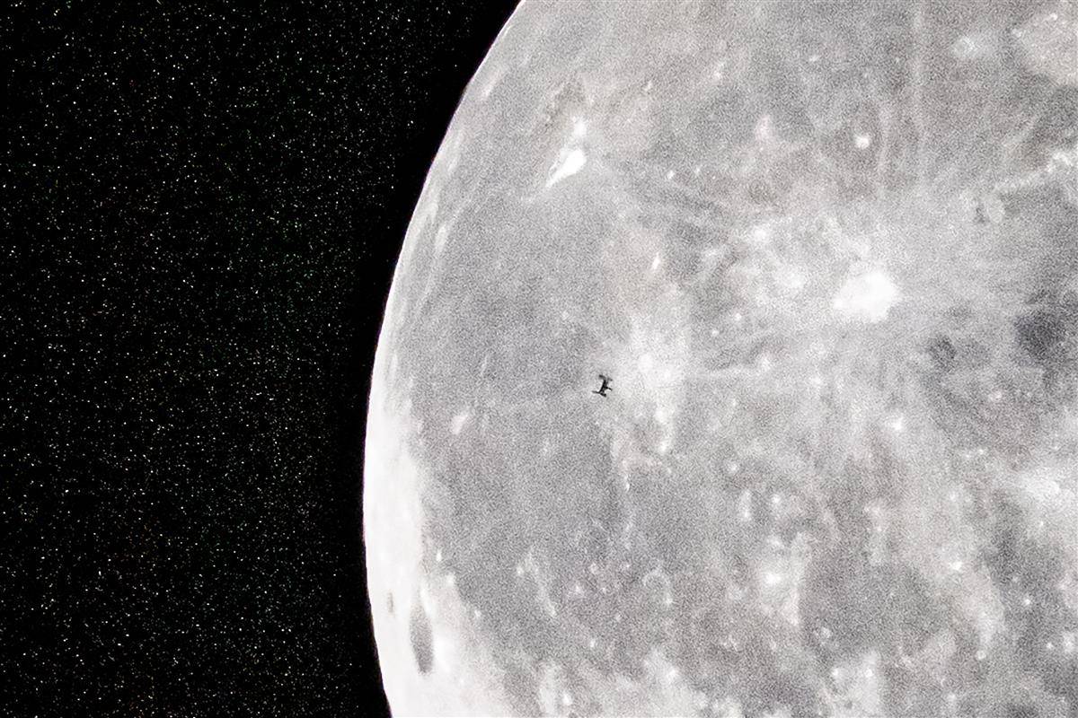 2025年10月11日凌晨4时30分36秒,中国空间站在武汉上空凌月。