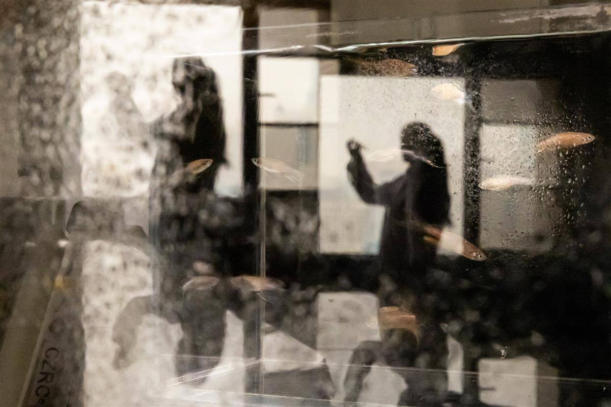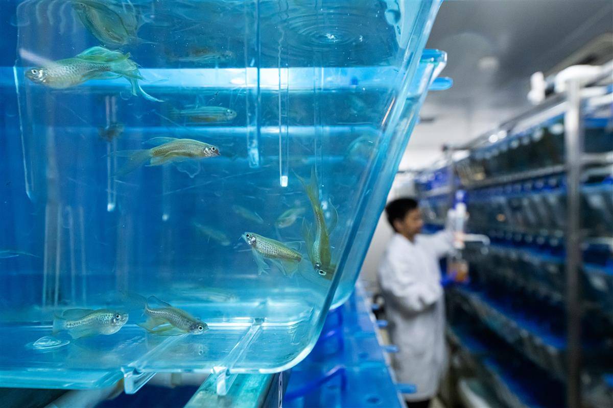 2024年9月26日,水生所国家斑马鱼资源中心主任孙永华研究员在鱼房内观察斑马鱼样本。