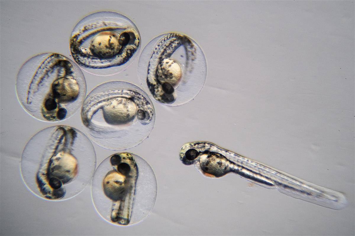 2024年9月26日,在水生所国家斑马鱼资源中心实验室,发育48小时后的斑马鱼胚胎。(显微摄影)
