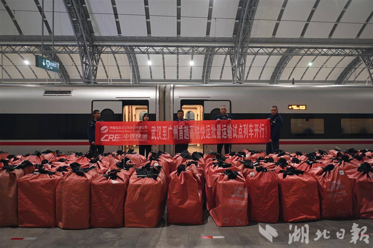 11月15日,随着DJ892次列车5时58分从汉口站、DJ890次列车4时38分从广州白云站双向始发对开,利用高铁动车组列车开展高铁快运批量运输试点工作正式实施,华中地区与粤港澳大湾区增添高铁物流新通道。列车利用京广高速铁路以时速350公里的速度运行,全程1080公里,采用“点对点”直达模式,沿途不进行货物装卸,运输时长约四个半小时,时效相比公路节约八成。