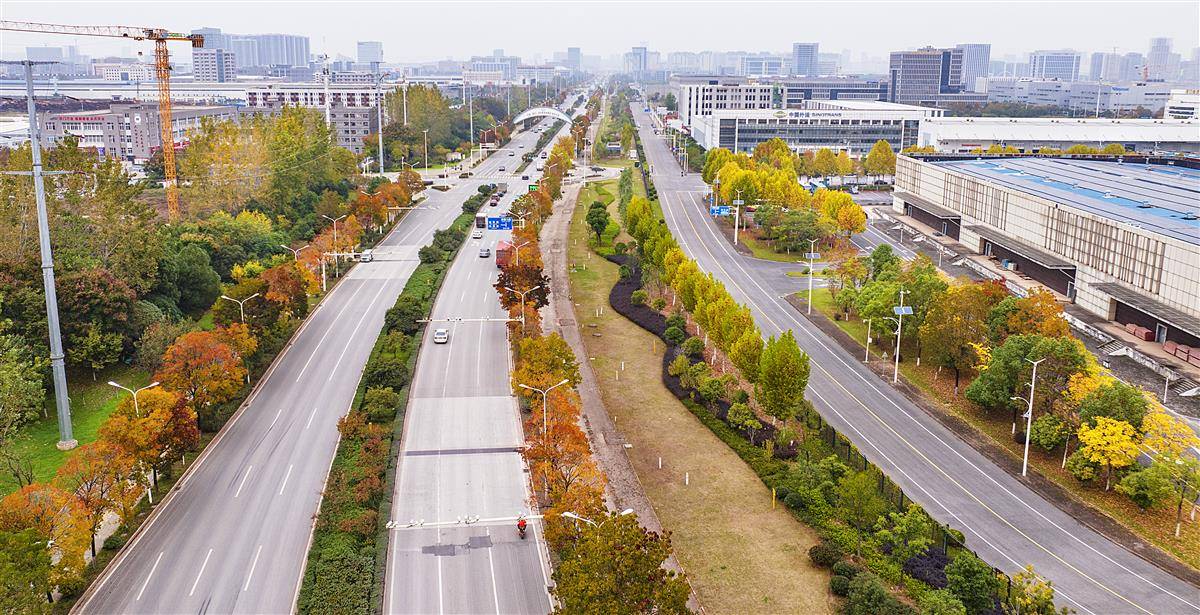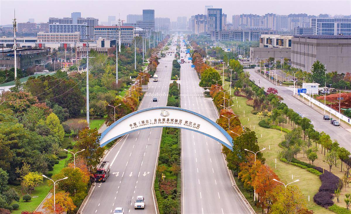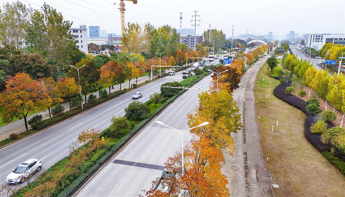 11月12日,行驶在武汉光谷三路的司机把车窗摇下,被路两侧漫天的乌桕树的红叶震撼到了,深秋初冬的光谷三路,乌桕树正上演年度色彩盛宴。被誉为光谷最长的乌桕景观大道,成了一条穿梭于季节间的流动风景线。(湖北日报全媒记者 朱熙勇 摄)