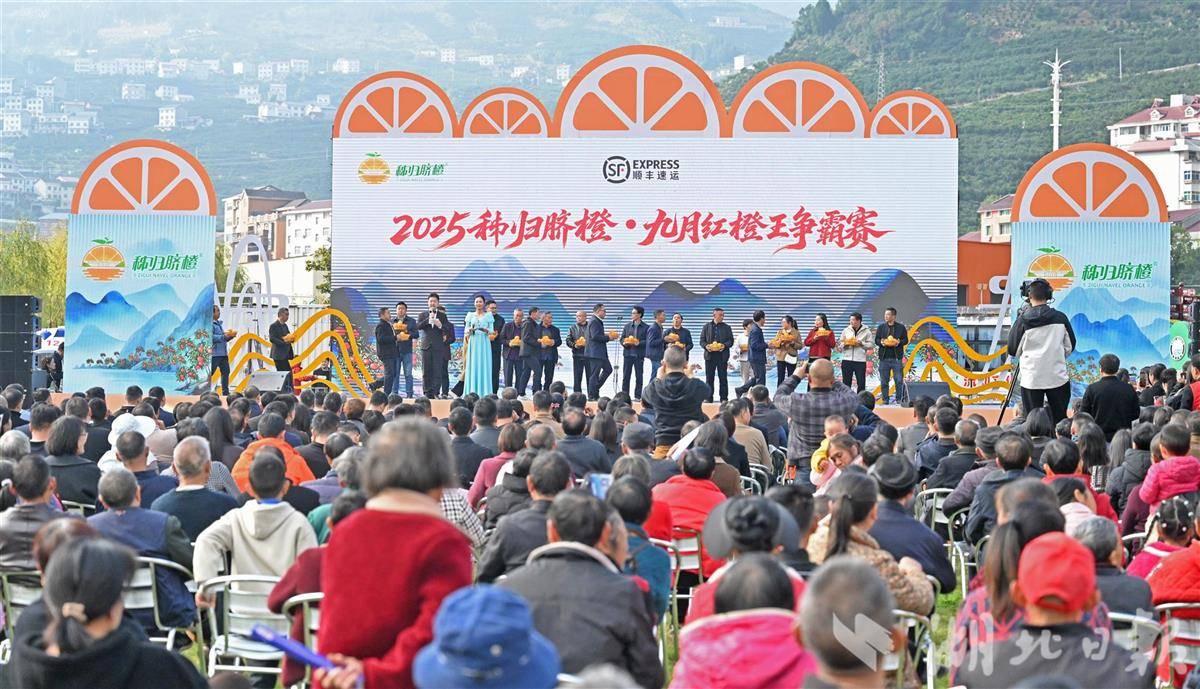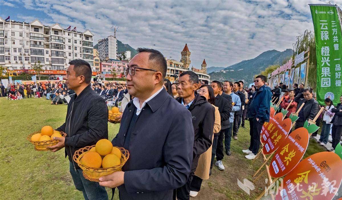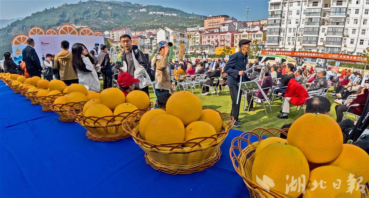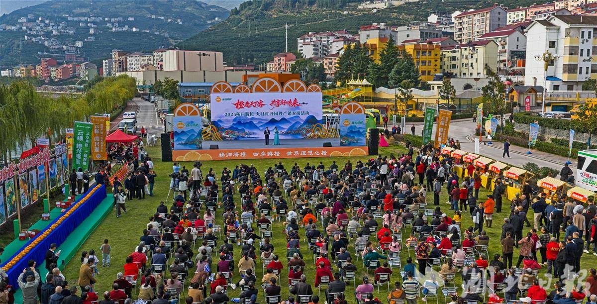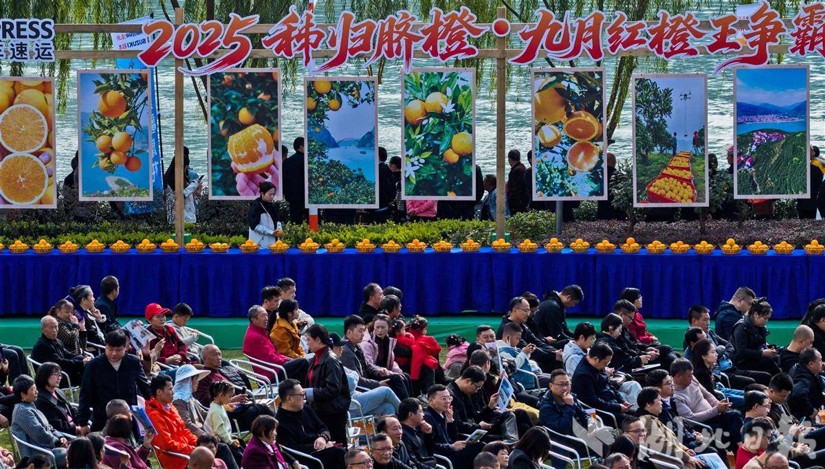 2025年11月15日,湖北省宜昌市秭归县水田坝乡,“秭归脐橙香 甜暖您的秋”九月红开园活动现场。