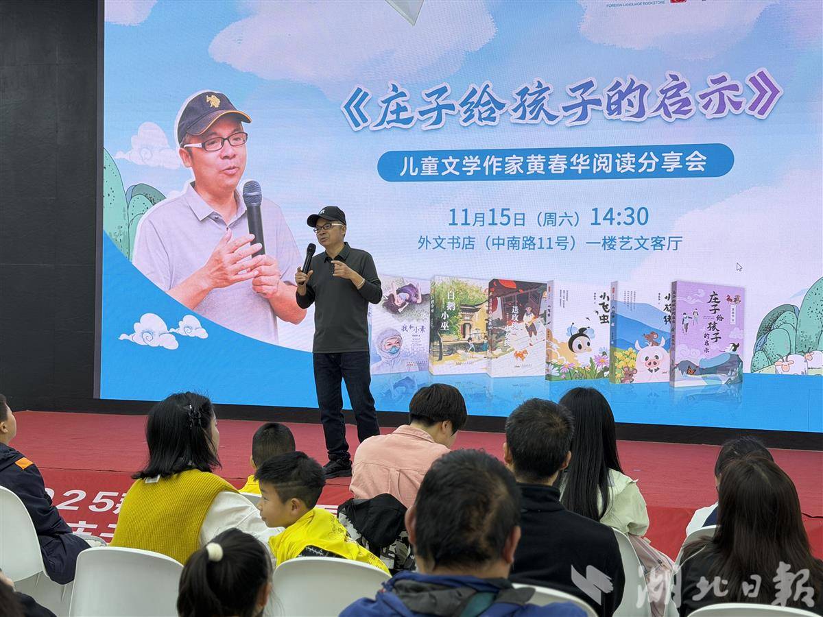 湖北日报讯(记者韩晓玲、通讯员李诗苑)11月15日,在湖北省外文书店举行的《庄子给孩子的启示》阅读分享会上,儿童文学作家、武汉作协副主席黄春华与读者共探庄子哲学如何赋能当代青少年的心智成长,吸引了众多家长和孩子参与。
