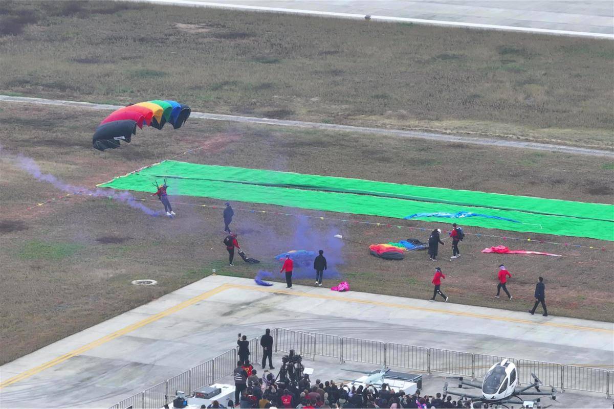 11月15日,2025年全国跳伞锦标赛在竹山县通用机场开幕。竹山县融媒体中心供图。