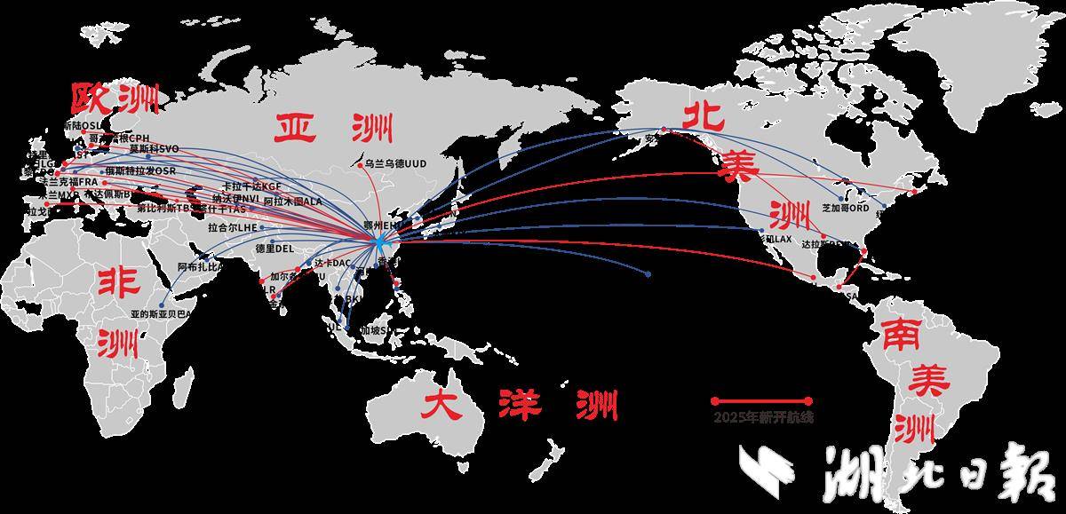 鄂州花湖机场国际航线。湖北国际物流机场有限公司 供图