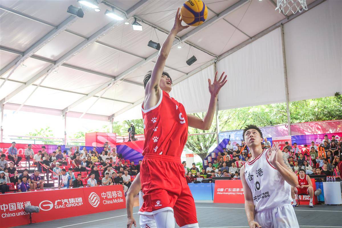 11月16日,广州天河体育中心篮球城,在十五运群众比赛三人篮球赛场,36岁的中南民族大学体育教师陈佳贺(12号)作为老大哥,和队友一起为湖北而战。当日中午湖北队21比15战胜香港队,十五运会群众三篮小组赛当日收官,以预选赛第一身份进入A组的湖北队最终四战全胜昂首晋级淘汰赛。