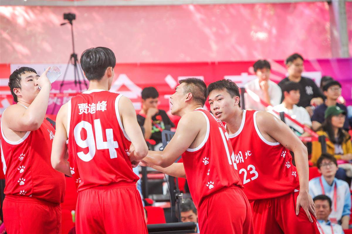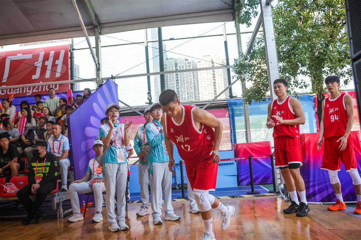 陈佳贺平日肩负着教学和带领校队训练的任务,在繁重的教学任务下,他只能利用休息时间和队友合练。三人篮球群众比赛报名年龄上限为40岁,这是陈佳贺的第一届全运会,可能也是最后一届全运会,作为“30+”,他用汗水和热爱诠释着“三十而已,热血不灭”的篮球信念,“咱们一步步来,争取站在领奖台,冲击最高目标。”(湖北日报全媒记者 时龚 摄)