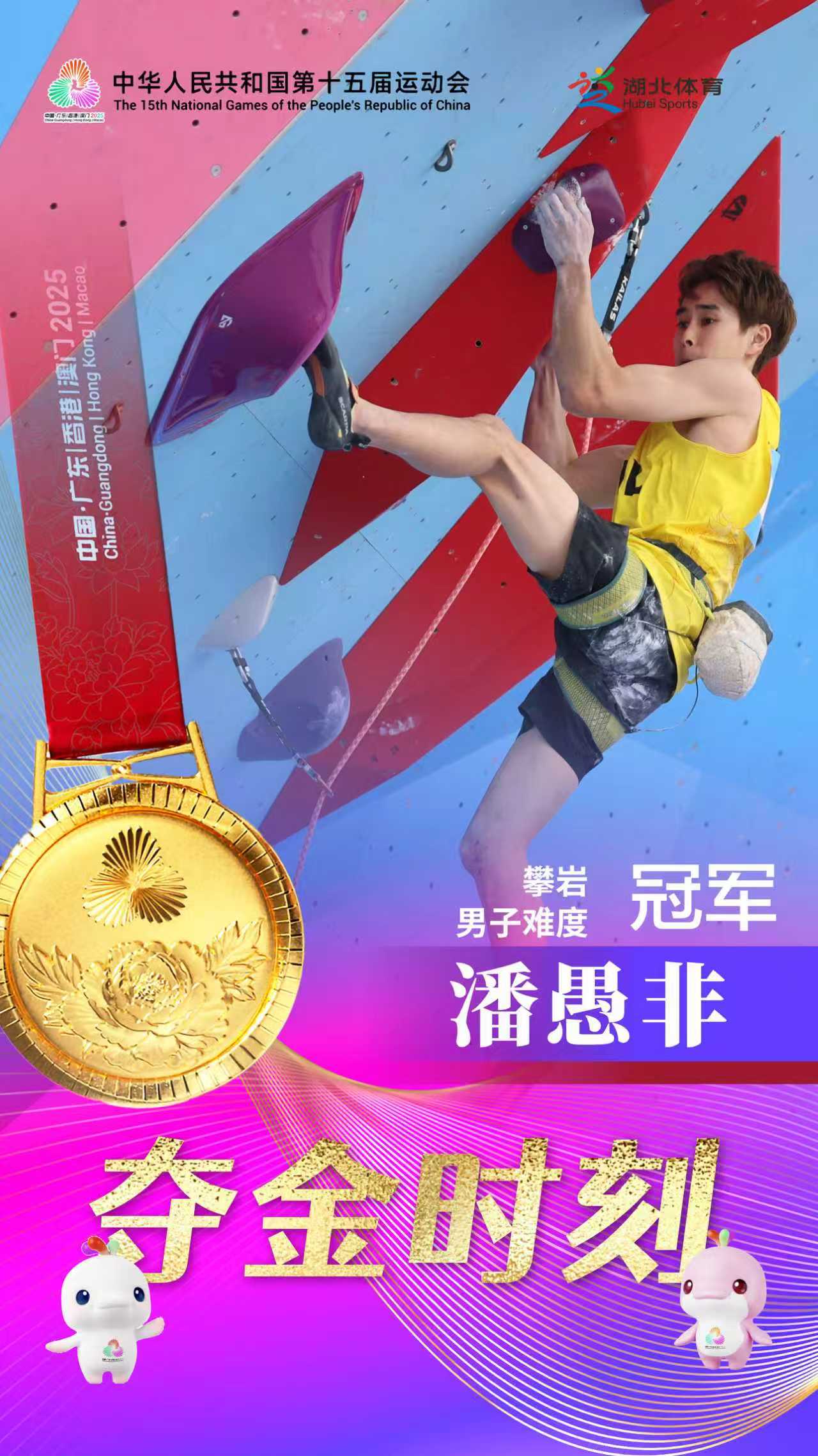 “太完美了,这一刻,他就是传奇!”11月13日,广州大学城体育中心极限运动中心,第十五届全运会攀岩项目男子难度赛决赛现场,当潘愚非稳稳扣住top岩点,现场DJ煽情的话语燃爆现场。拿下难度赛冠军后,潘愚非再接再厉,在15日的攀石决赛中为湖北再添一金。在当晚的女子攀岩速度赛四分一决赛中,曾连夺前两届全运会冠军、同样被誉为中国攀岩“传奇”的牛笛尽管未能再进一步,却用个人最好成绩为自己的攀岩生涯画上句点。