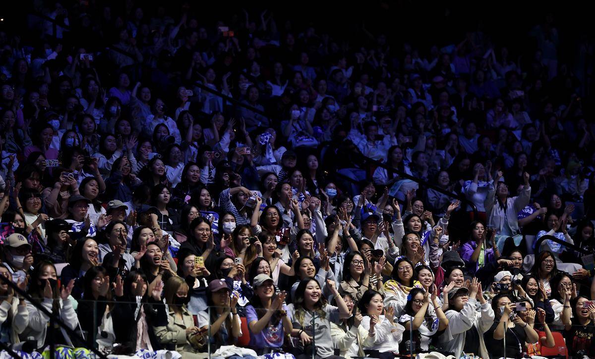 11月12日男女单打陆续进行1/8决赛,赛前,加油声和欢呼声已如山呼海啸。当晚,同时出场的王楚钦和王曼昱,分别迎战香港的黄镇廷和江苏的钱天一。他们各自的球迷如打擂般轮换着为双方加油,声势一浪高过一浪。在孙颖莎、樊振东、林高远、刘诗雯、马龙等明星球员登场时,亦是如此。
