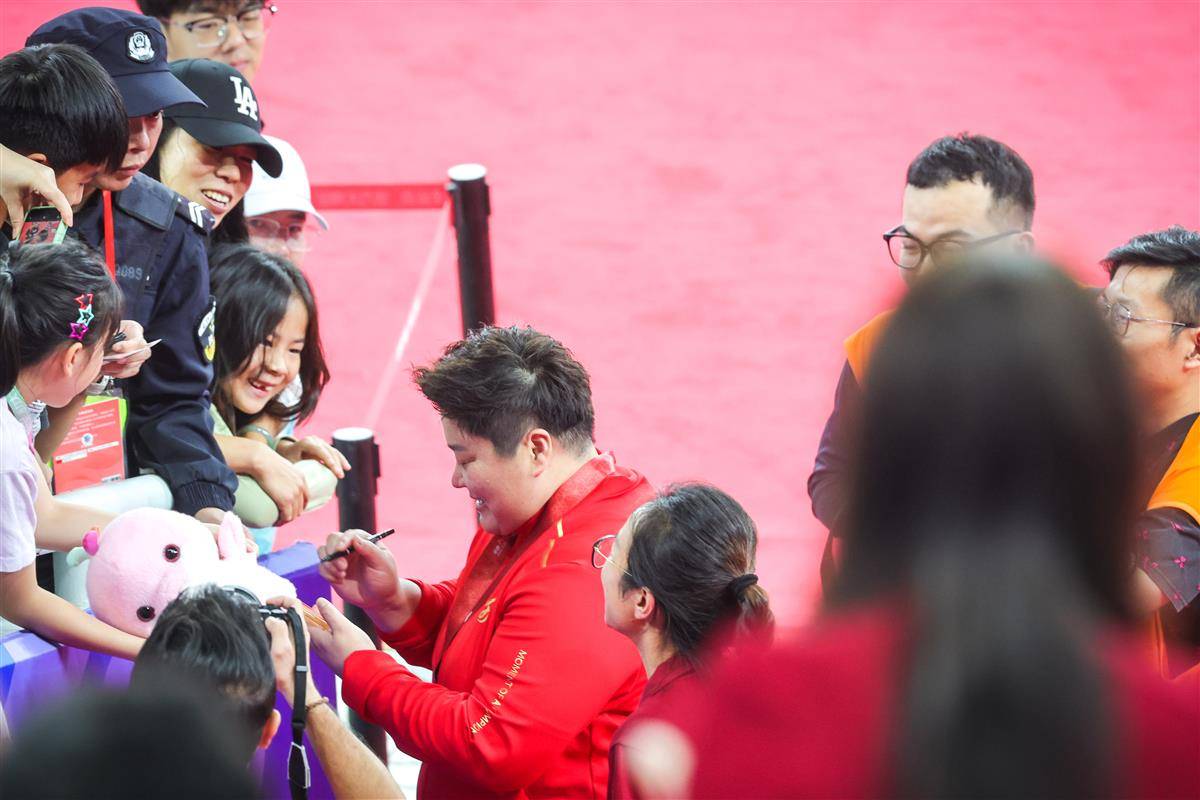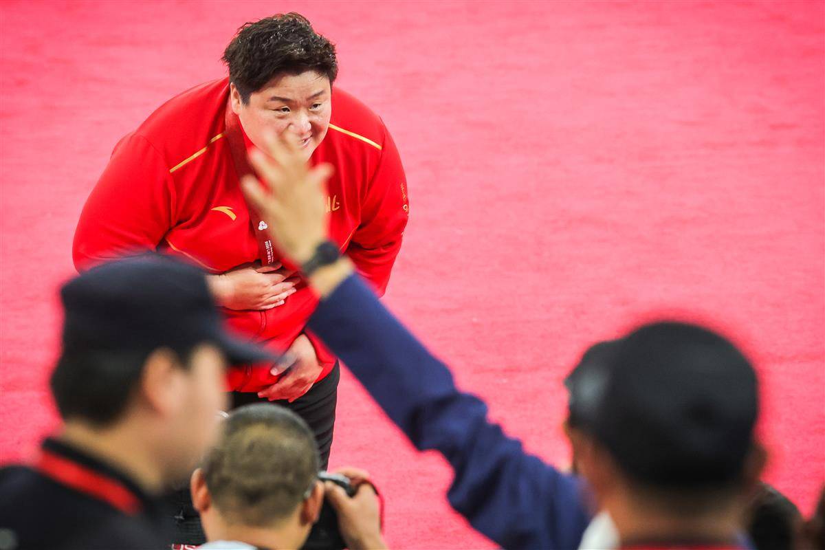11月16日,广东奥体中心体育场,十五运女子铅球项目河北队实现金银铜牌包揽,奥运冠军、河北名将巩立姣实现个人全运五连冠后宣布退役,泪别赛场。(湖北日报全媒记者 时龚 摄)