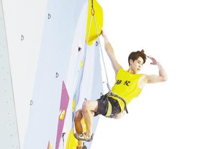 潘愚非心无旁骛,专注于面前一个个岩点,最终从容完攀。继陕西全运会收获难度和攀石两项全能金牌后,再度登顶。他为湖北队争得了荣誉,也在家门口(潘愚非出生在广州)展现出统治力。“特别激动和满足!”走下赛场,潘愚非说。